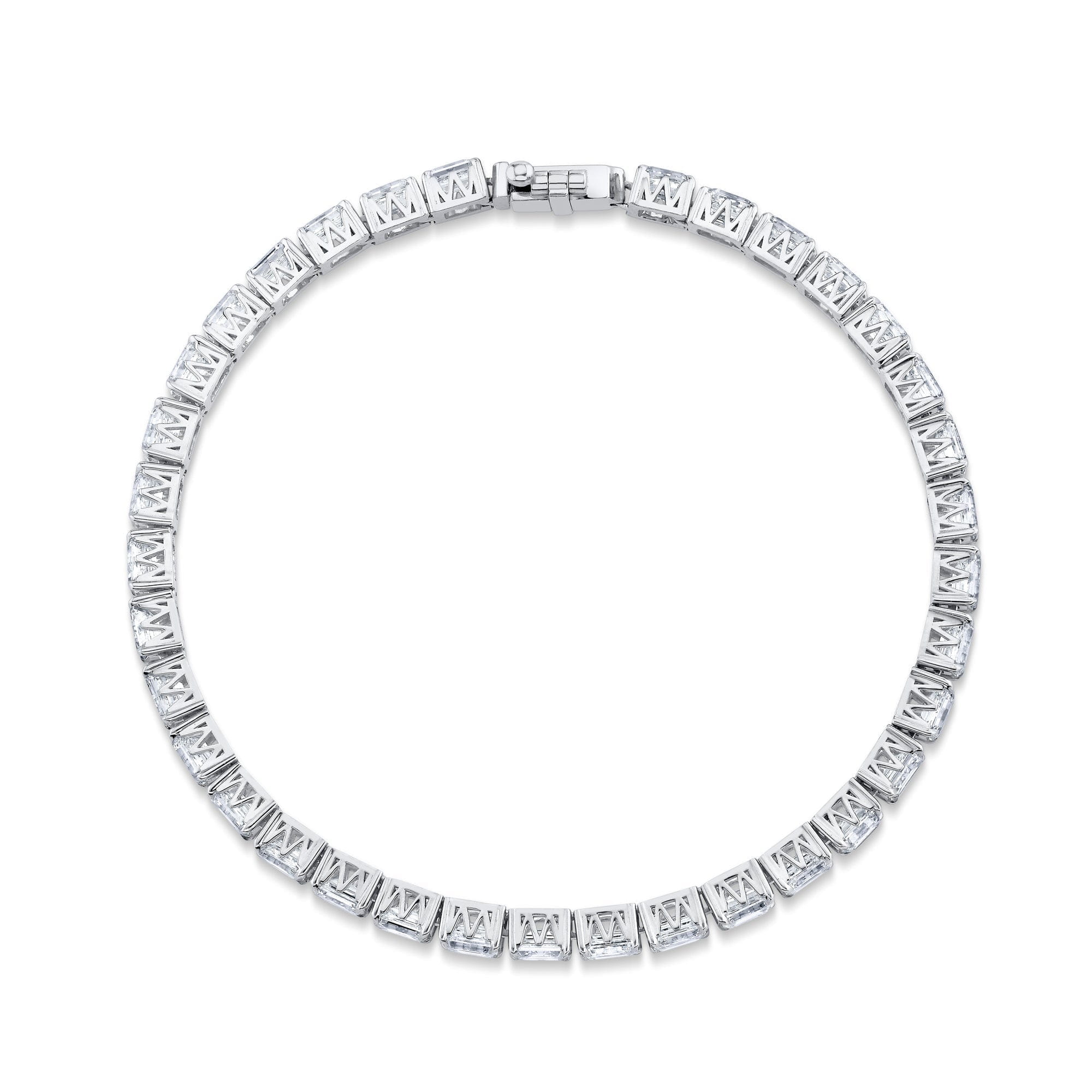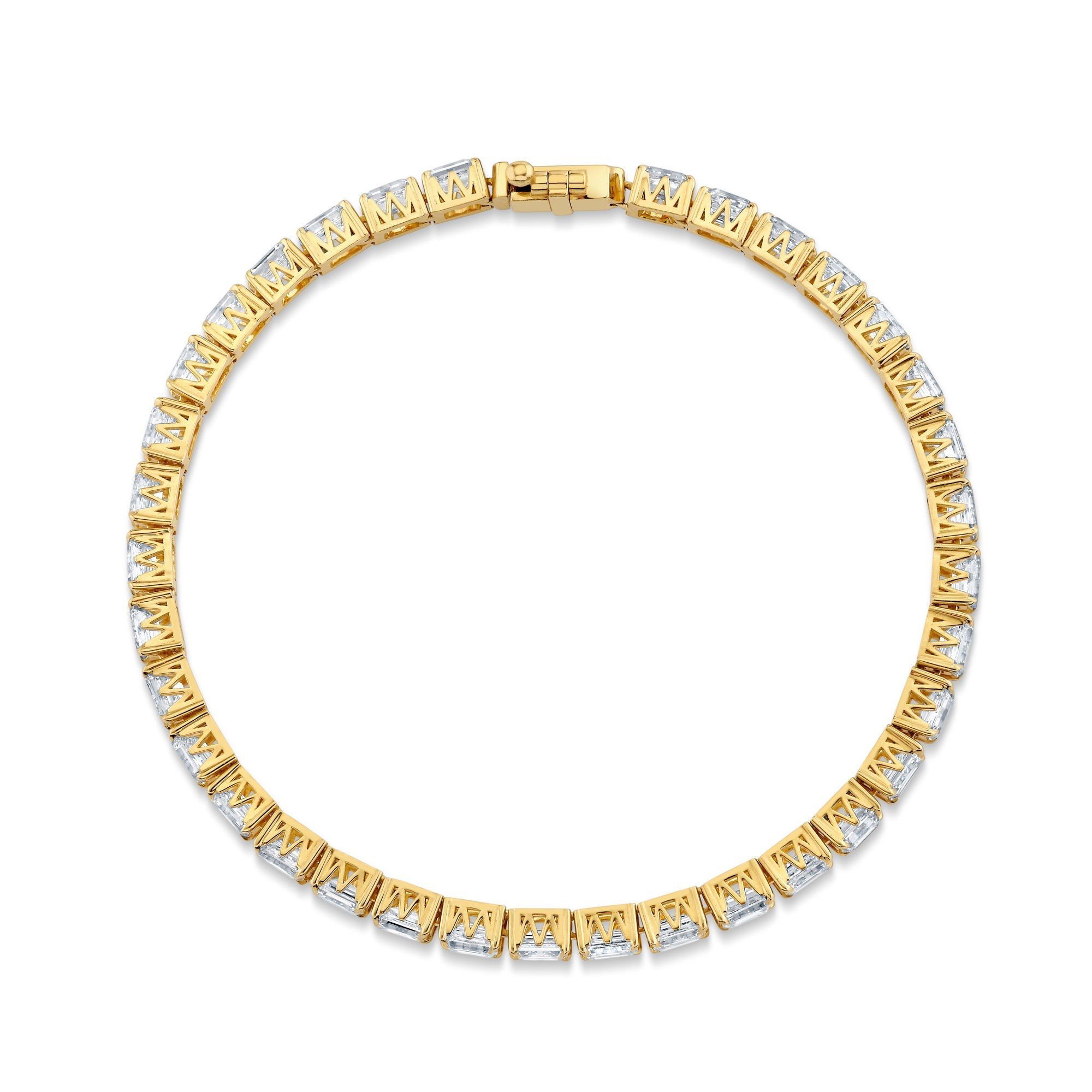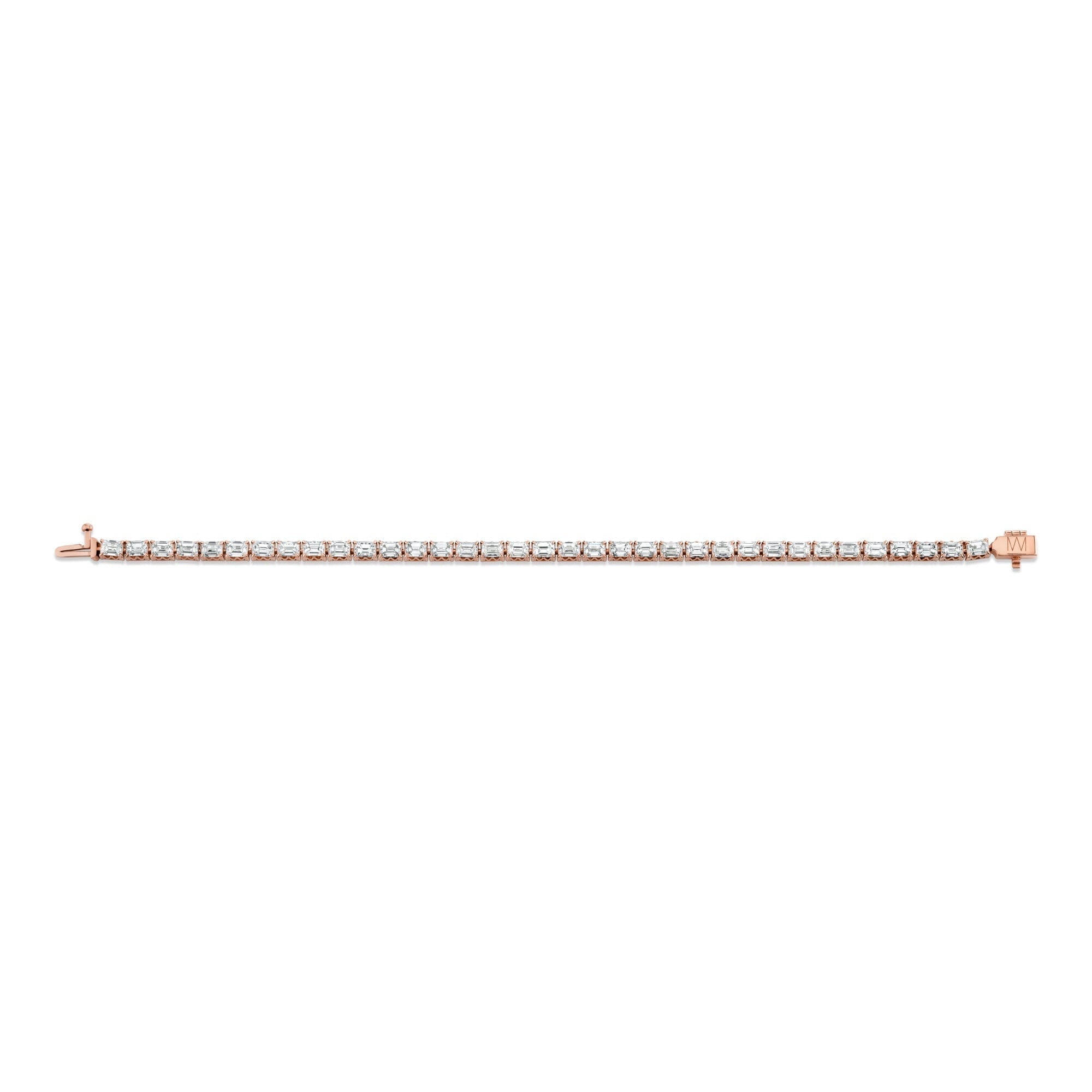 The Meksian Emerald Tennis Bracelet petite combines timeless elegance with expert craftsmanship. Featuring emerald-cut diamonds, each stone is securely held in the unique patented Meksian