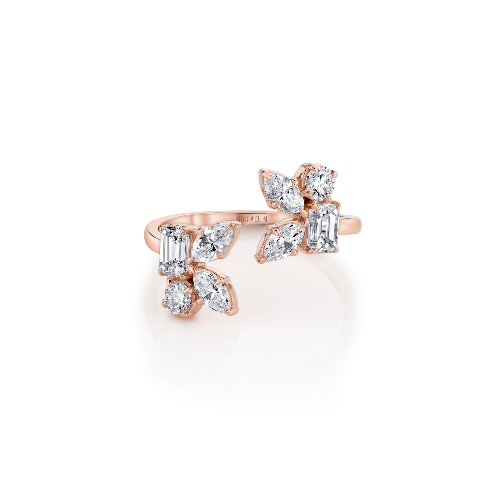 MICHAEL M Rings 18K Rose Gold / 4 Montage Cluster Bypass Ring F412