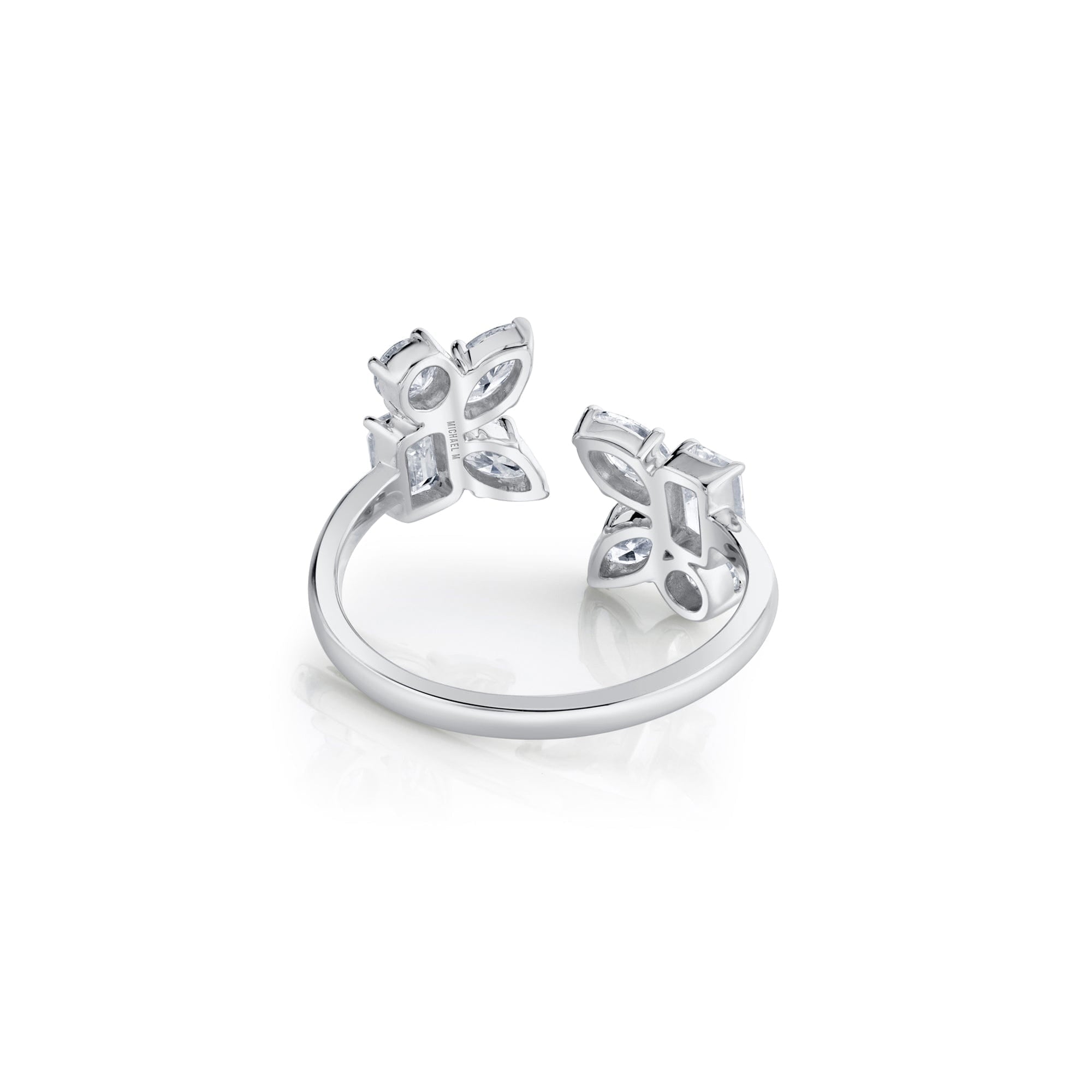 Expertly designed, the Montage Cluster Bypass Ring showcases two stunning diamond clusters featuring emerald, marquise, and round cut diamonds. With exquisite craftsmanship, this ring exudes