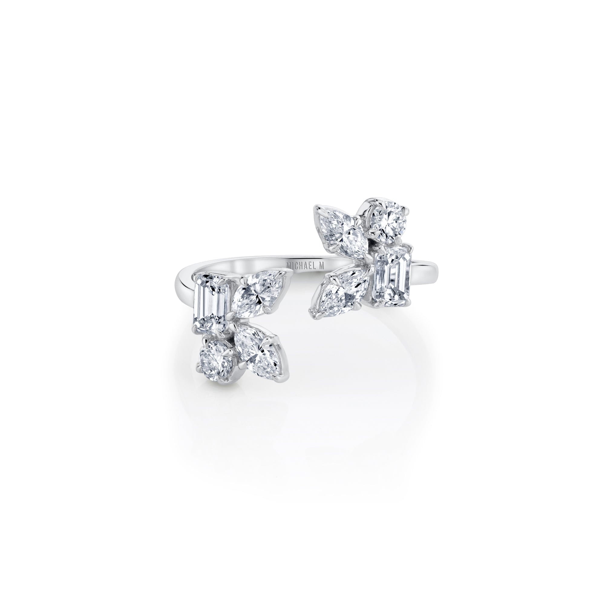 MICHAEL M Rings 18K White Gold / 4 Montage Cluster Bypass Ring F412