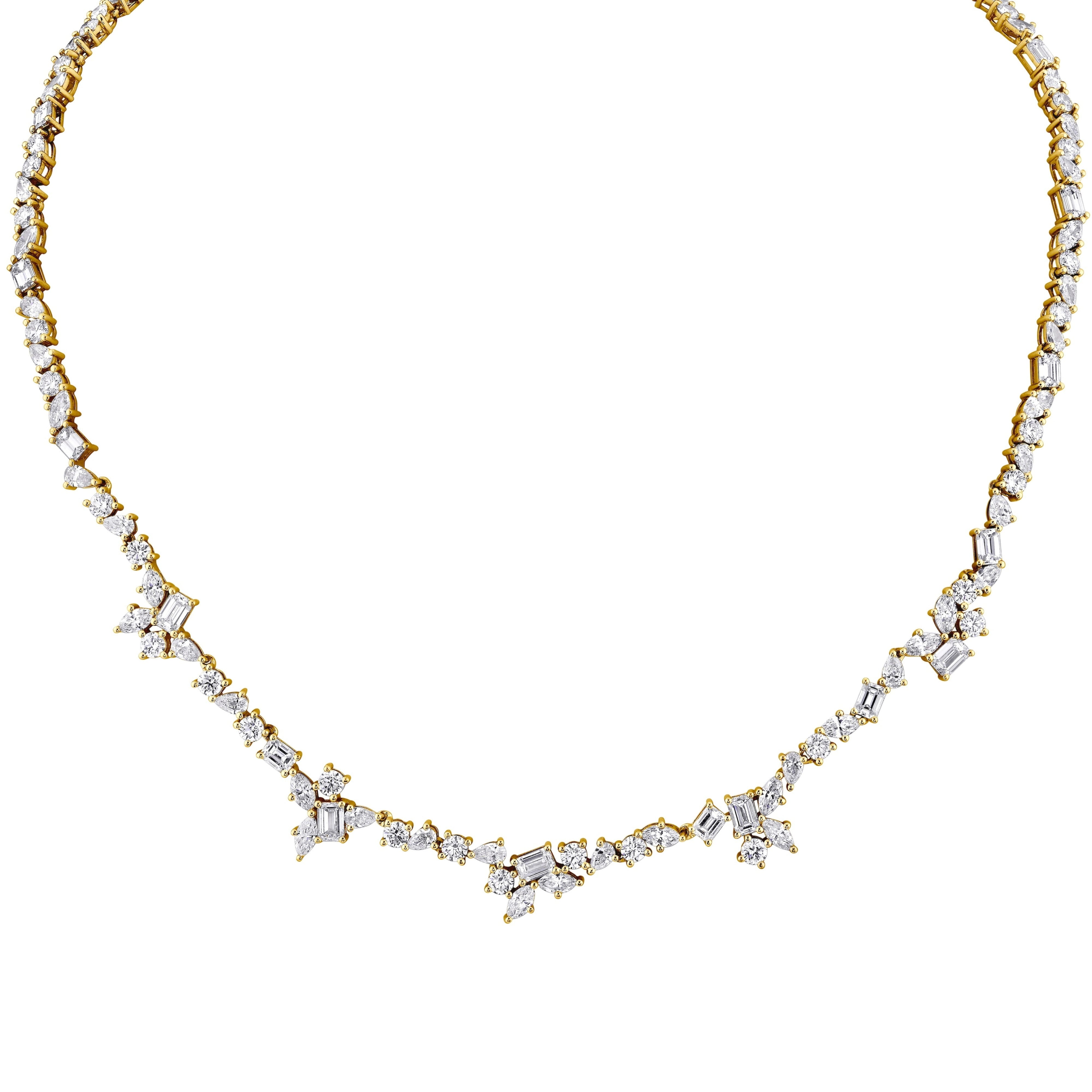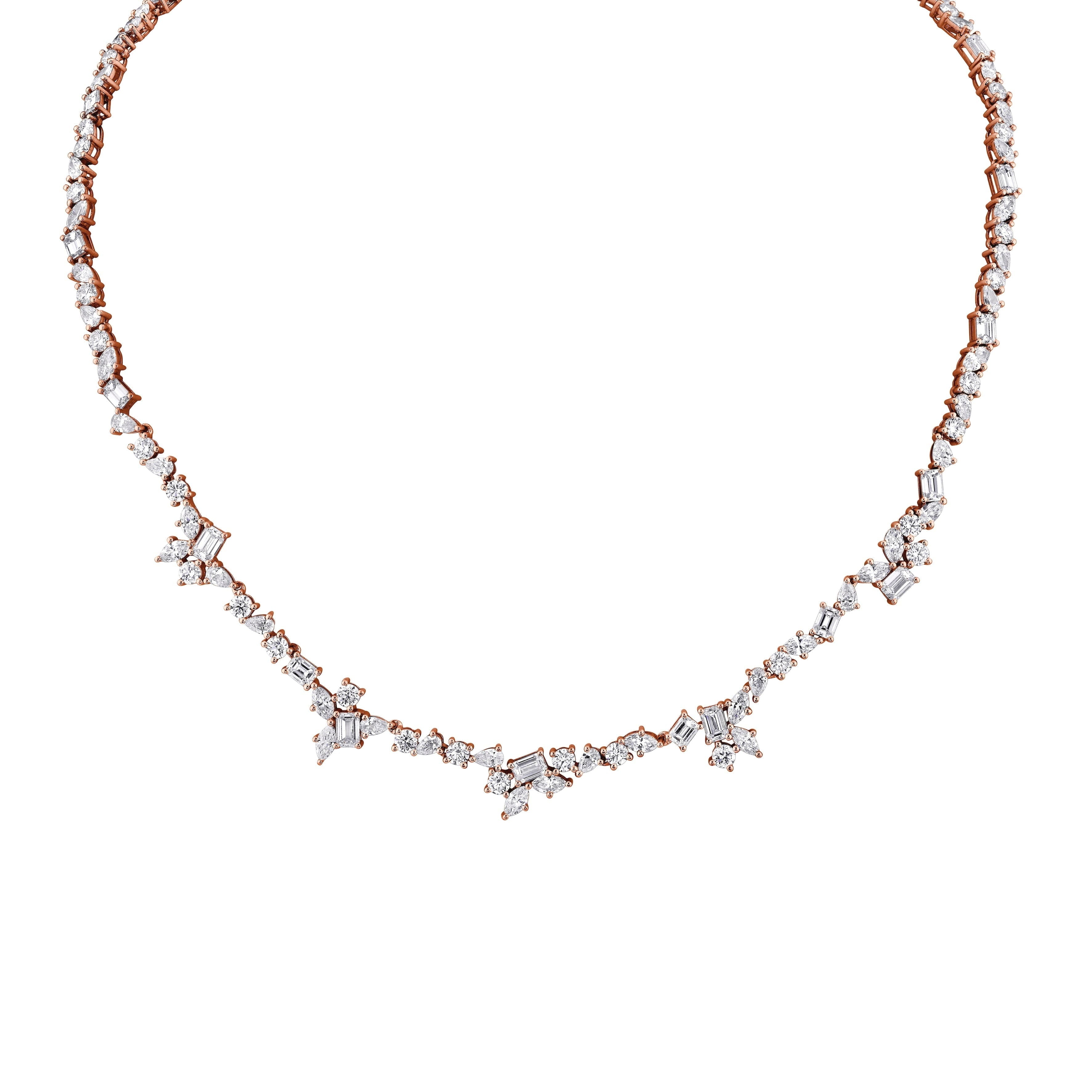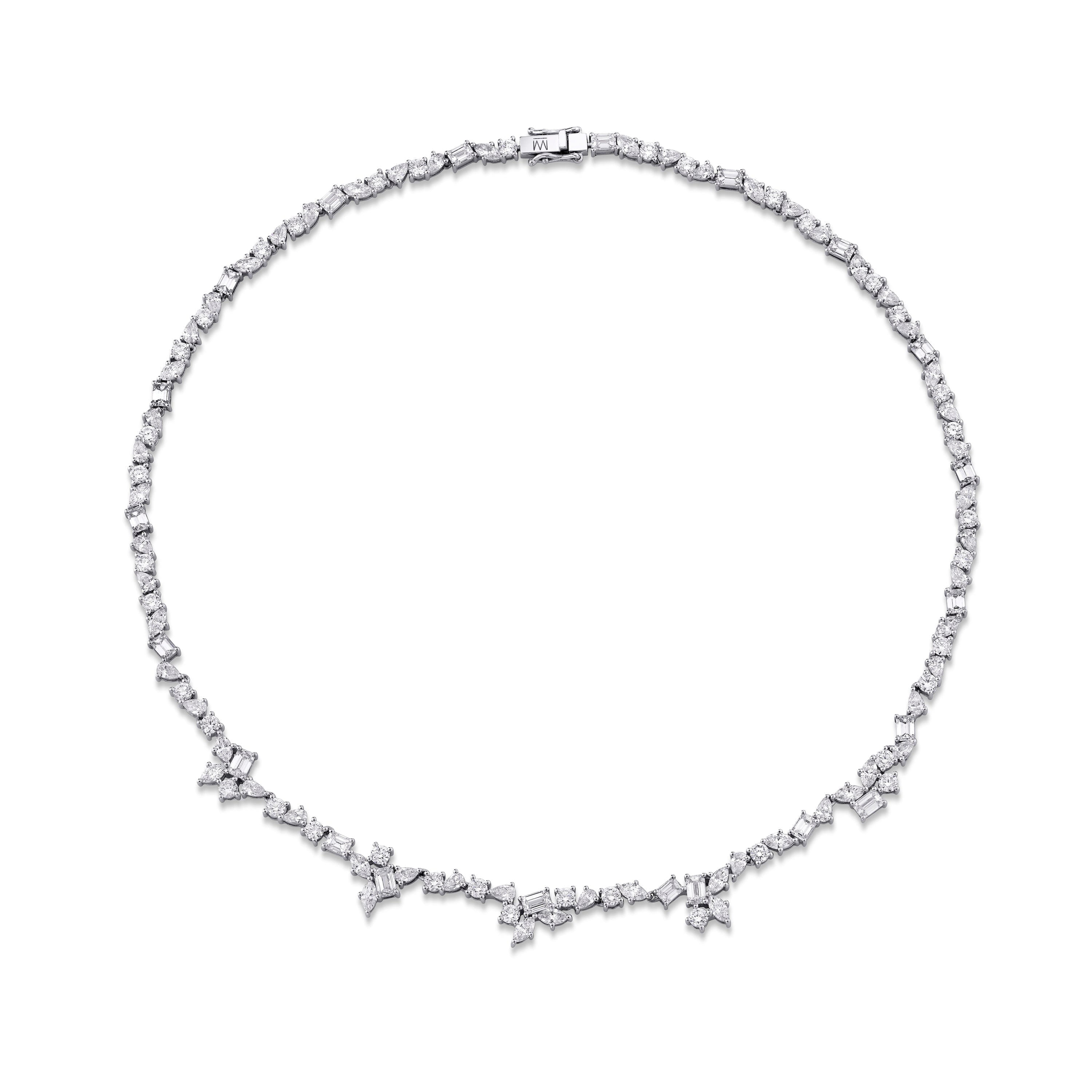Expertly crafted to showcase the brilliance of mixed cut diamonds, this timeless Montage Eternity Tennis Necklace features 5 front facing clusters and an organic placement