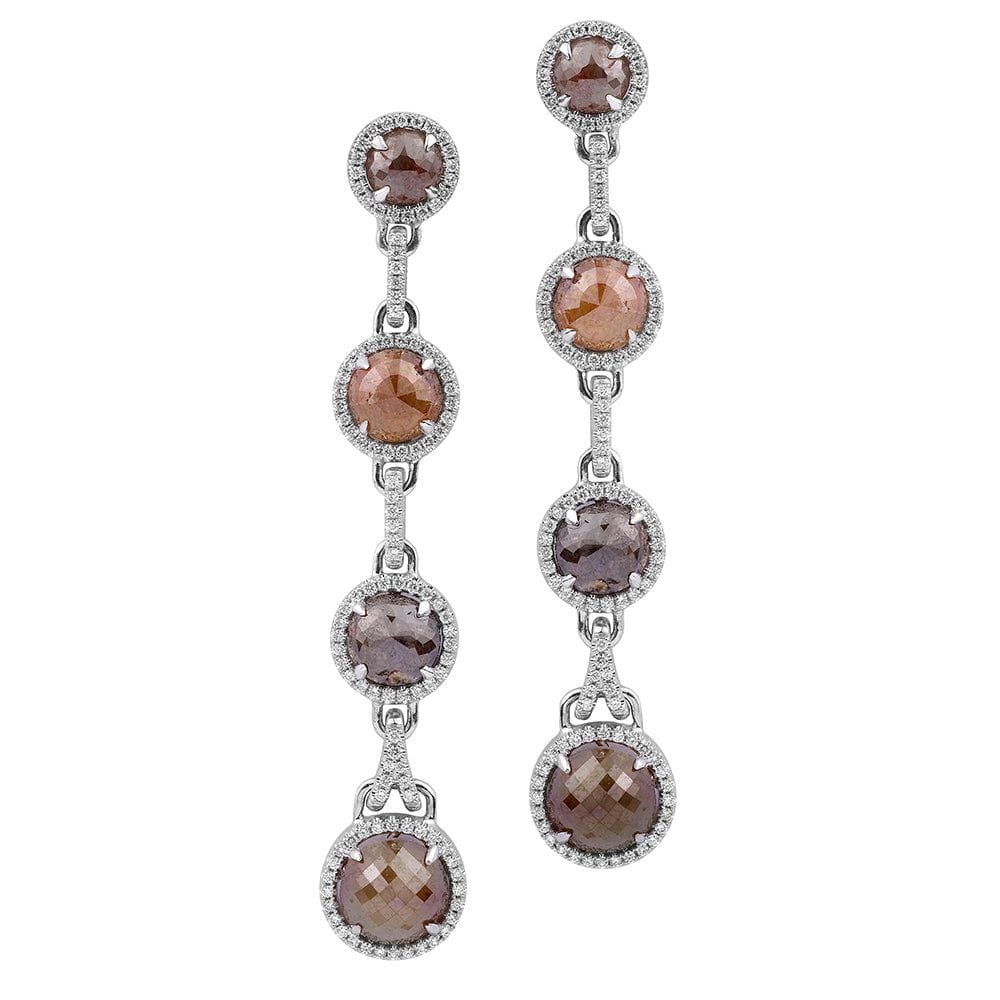 A captivating display of vintage elegance and modern artistry, these Dreaming in Color drop earrings feature eight exquisite mixed-colored rose-cut diamonds, totaling 13.57 carats. Each