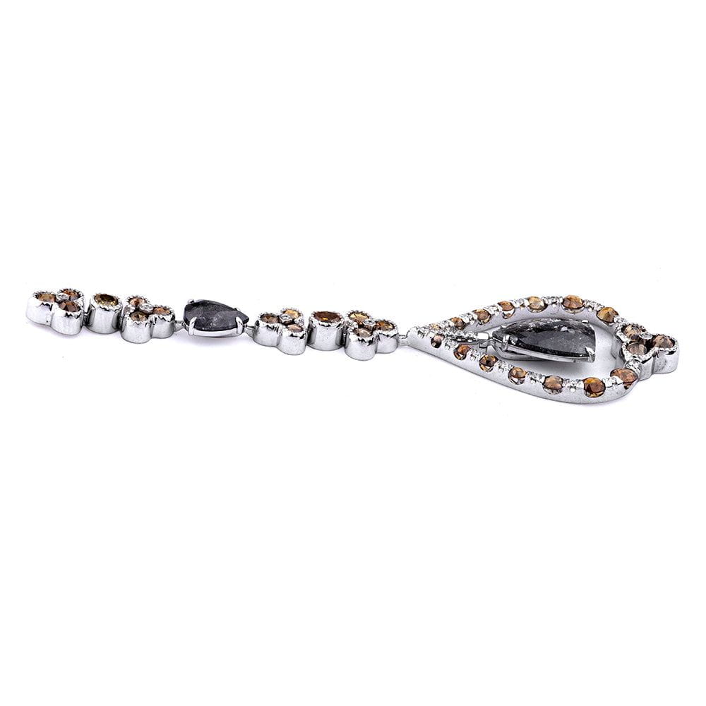 A masterpiece of elegance and artistry, this extravagant drop necklace features a captivating pear-shaped grey diamond, totaling 5.99 carats, as its striking focal point. An