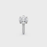 The Crown R812PV-3 Oval features a three-row pavé design that runs parallel to the shank. Each diamond is carefully drilled and set by hand for