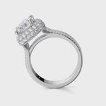 The Crown R755-2 ring exudes timeless elegance, a luxurious masterpiece that is sure to impress. Adorned with three rows of diamonds along the band and