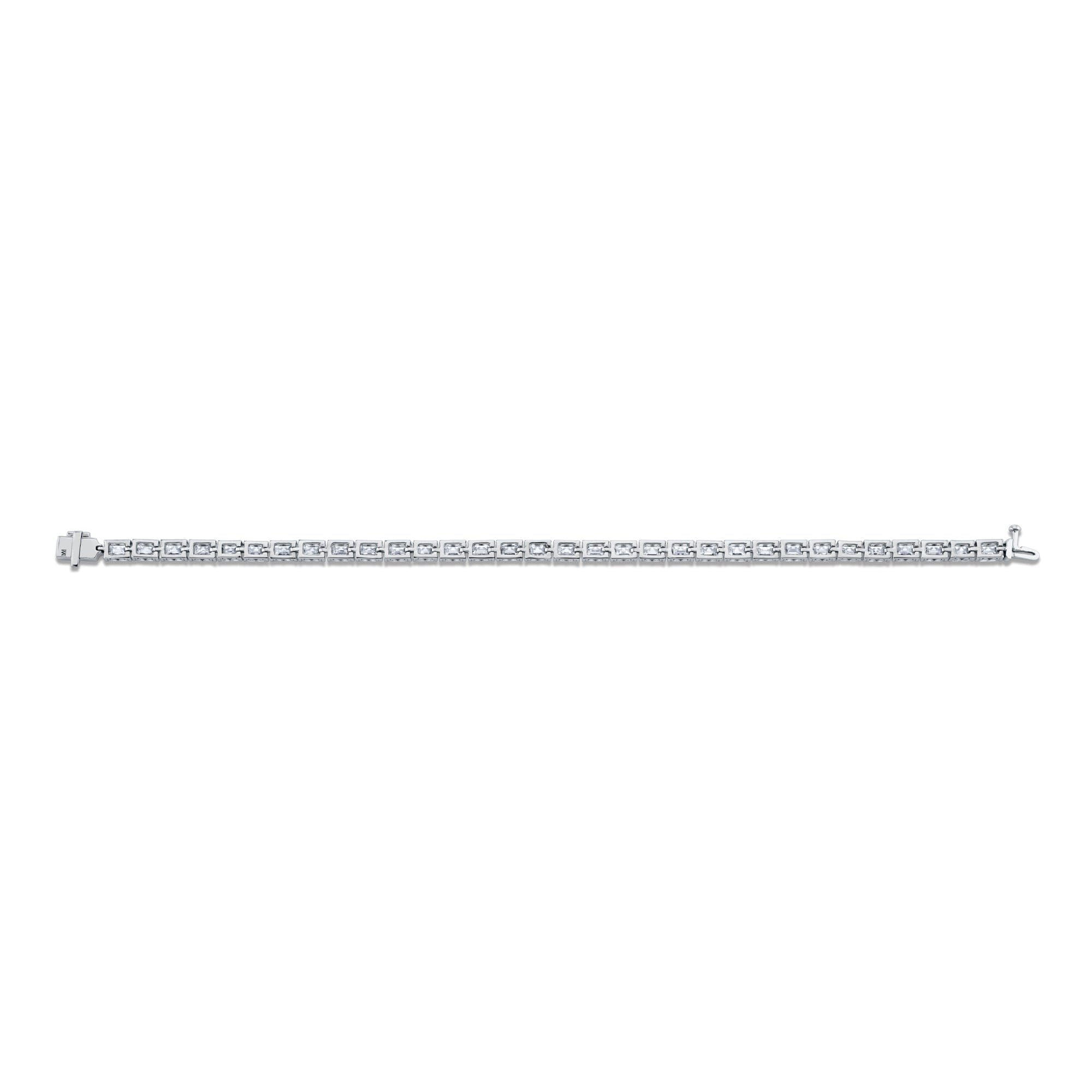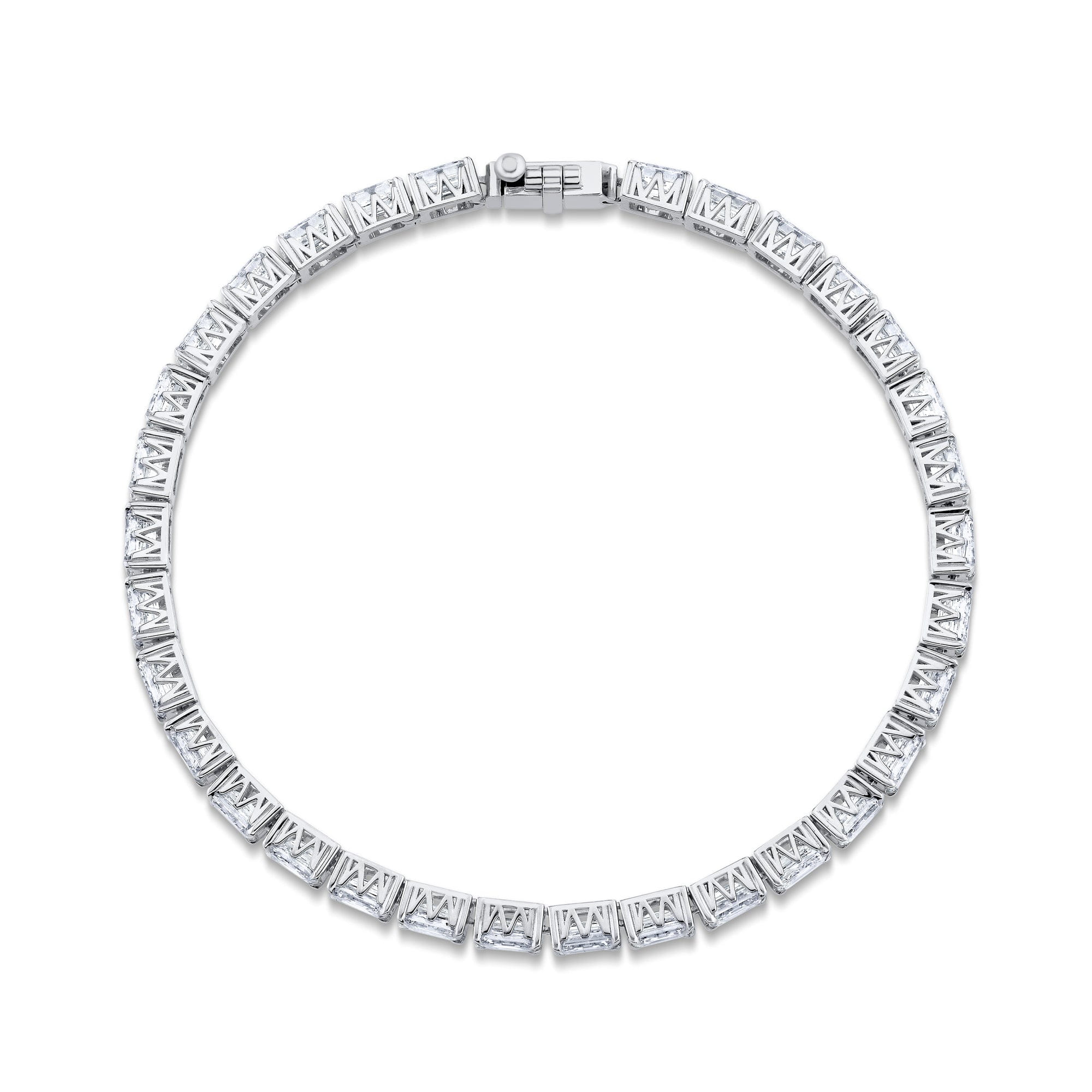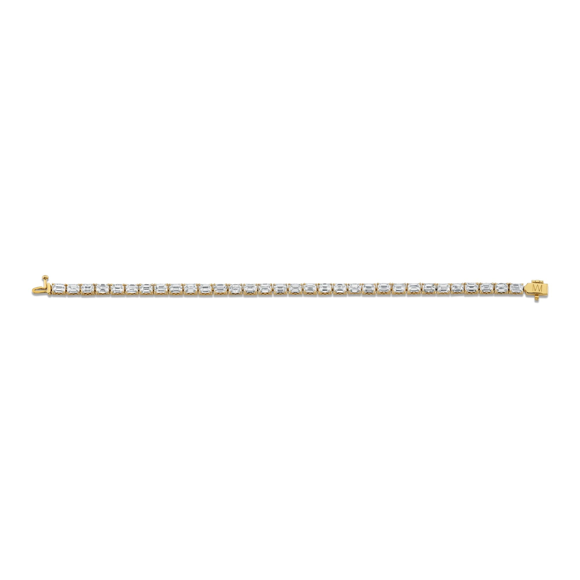 The Meksian Emerald Tennis Bracelet Bold combines timeless elegance with expert craftsmanship. Featuring emerald-cut diamonds, each stone is securely held in the unique patented Meksian