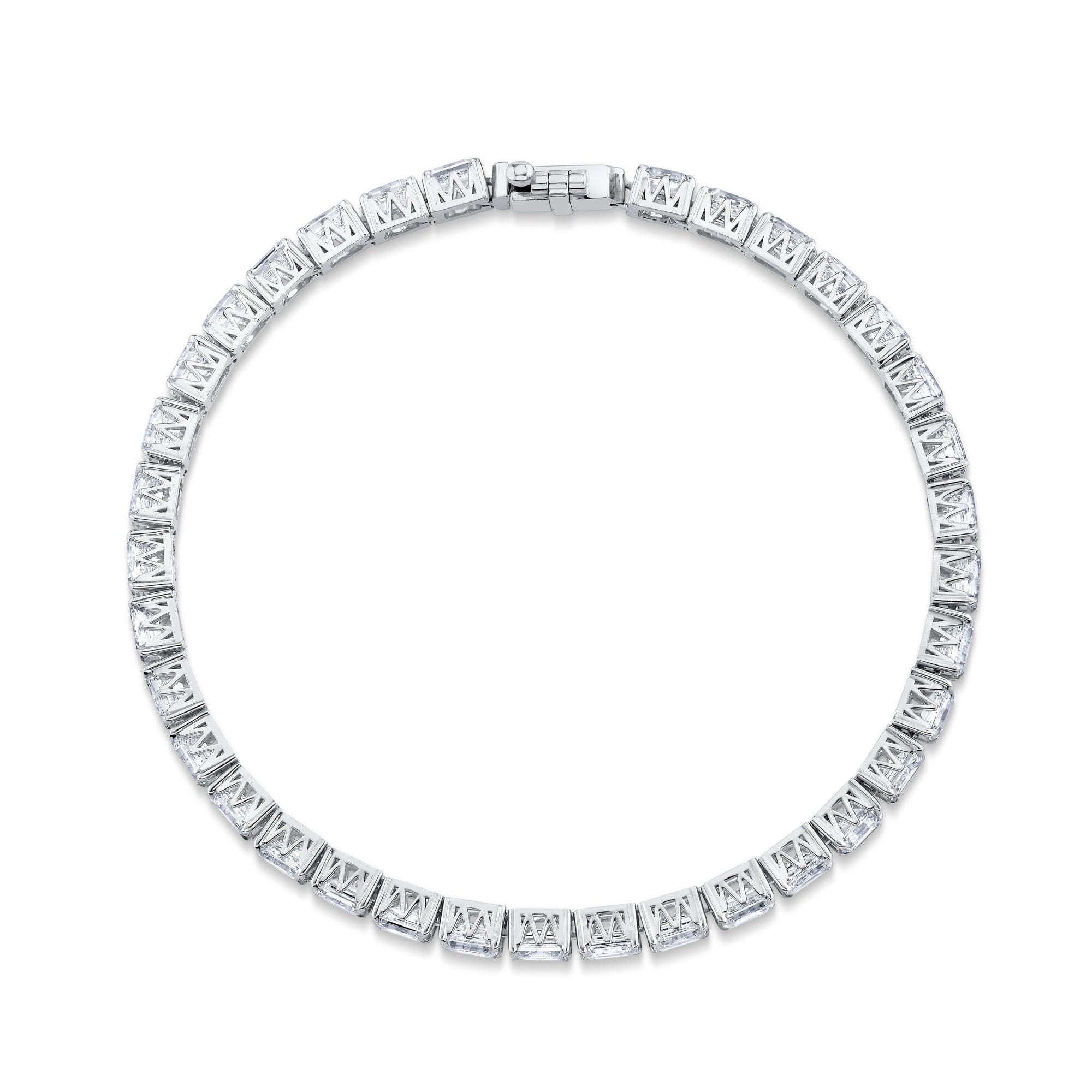 The Meksian Emerald Tennis Bracelet petite combines timeless elegance with expert craftsmanship. Featuring emerald-cut diamonds, each stone is securely held in the unique patented Meksian