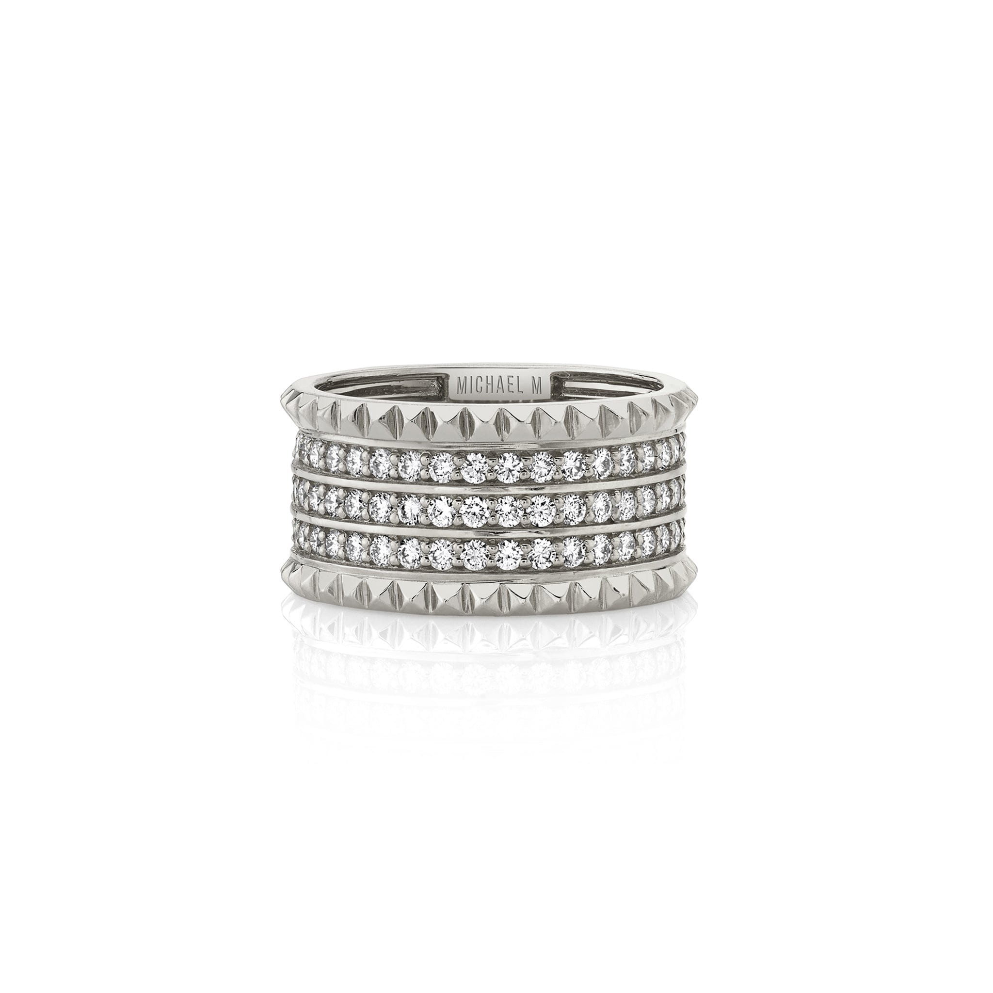 MICHAEL M Fashion Rings 14K White Gold / 4 Tetra Triple Pavé Band B363WG