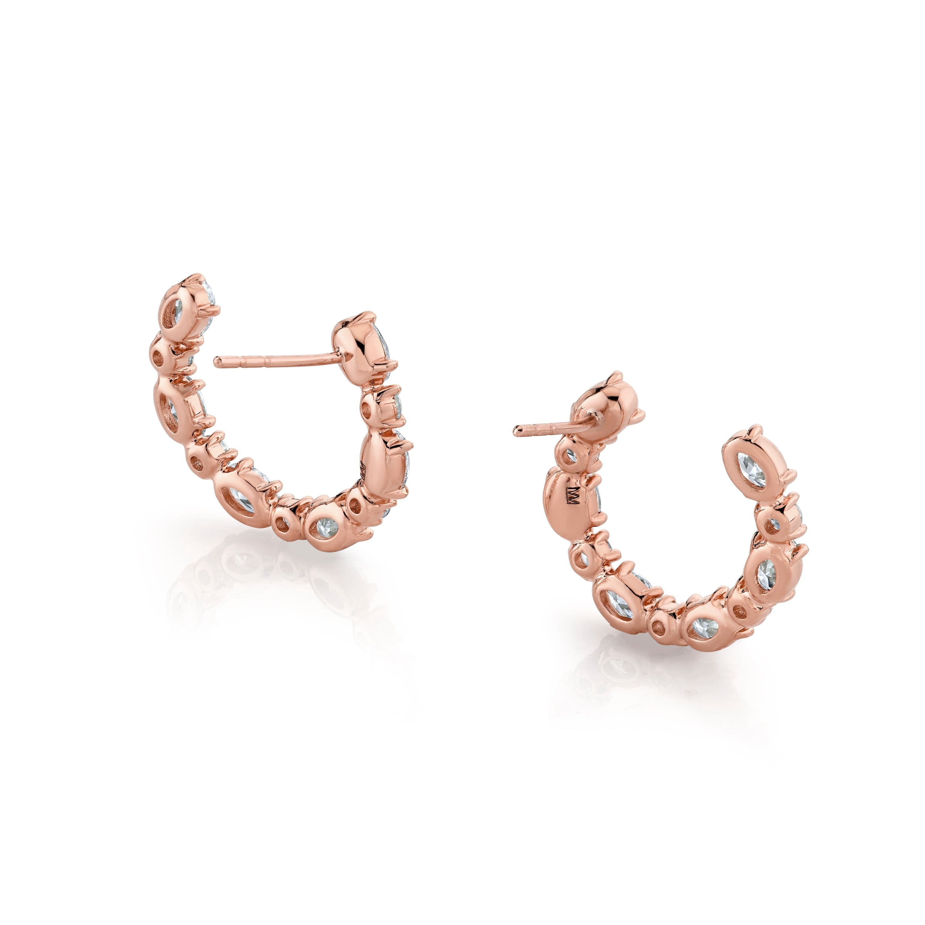 These stunning hoops are perfect for adding both shine and elegance to any outfit. With alternating oval and round cut diamonds, this timeless design is