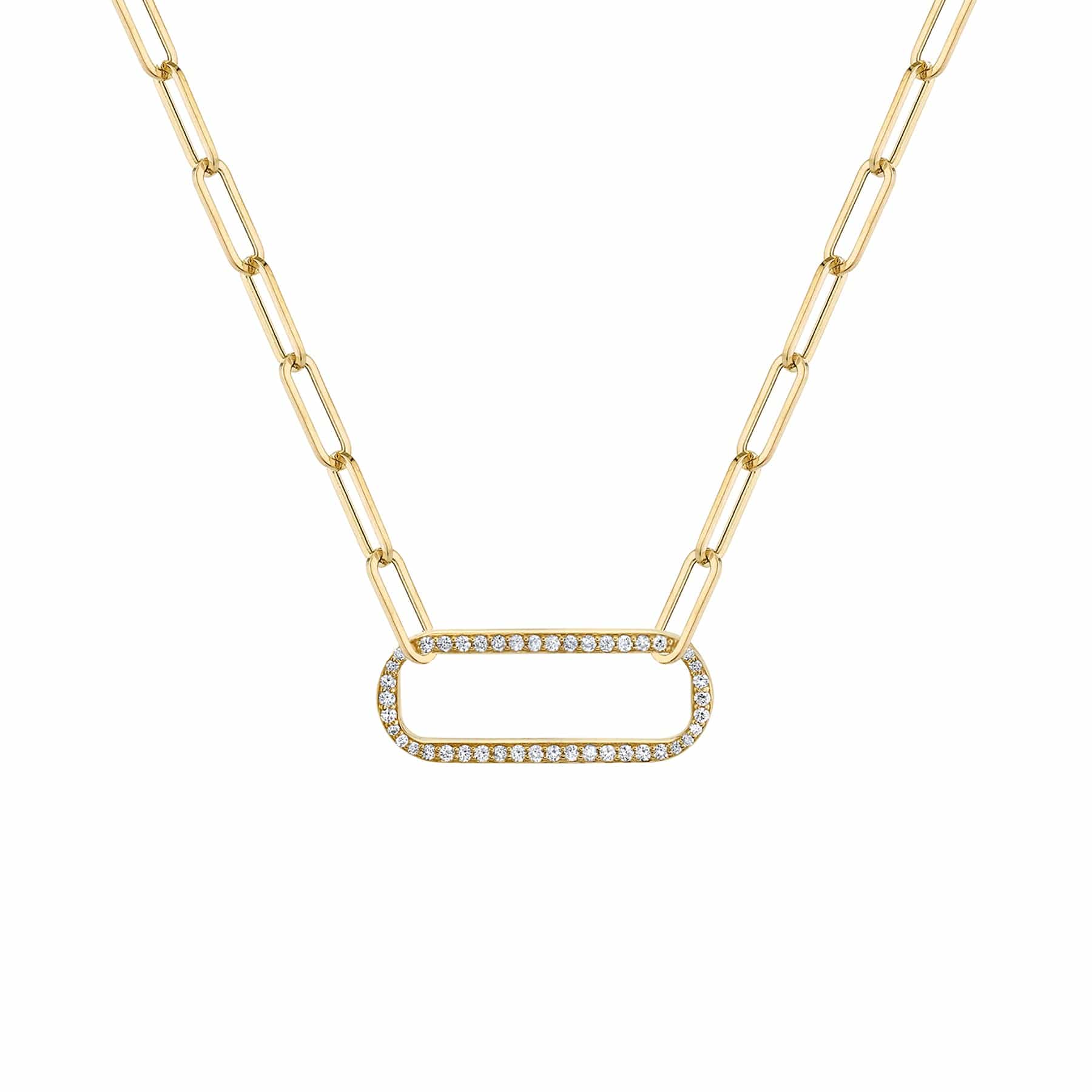 Everyday elevation of your necklace layers. An oversized pavéd flat horizontally suspended link brings your everyday necklace stack up a few notches. SKU #CN356