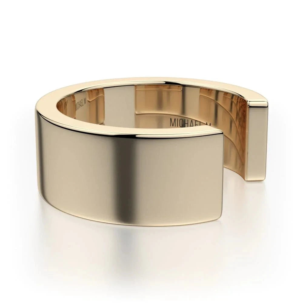 This Wide Metal Band has a partial opening for a unique touch and features a velvety smooth luster, perfect on its own or paired with other