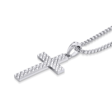 This sleek Tetra Cross Pendant creates a minimalist masculine form with two rows of defined pyramid studs. The tapered knife edge of the bail compliments