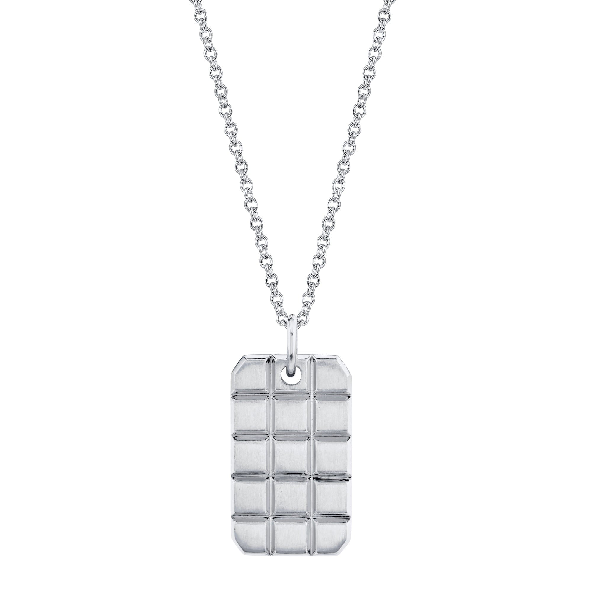 MICHAEL M Men's 18K White Gold Mens Block Dog Tag Necklace MP242