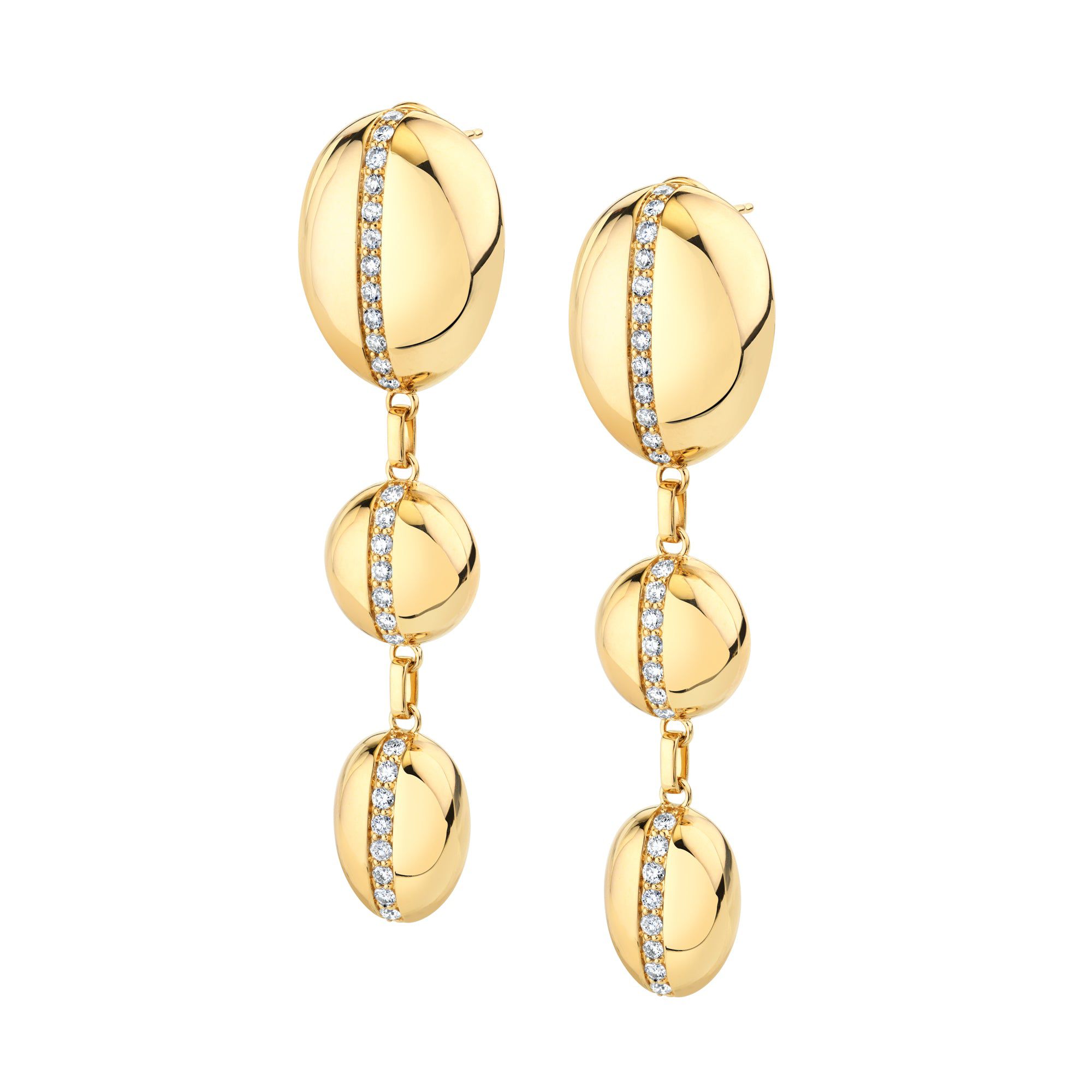 A throwback design made classic and contemporary. The ORB Split Drop Earrings features softly golden organic shapes split all the way down the middle with