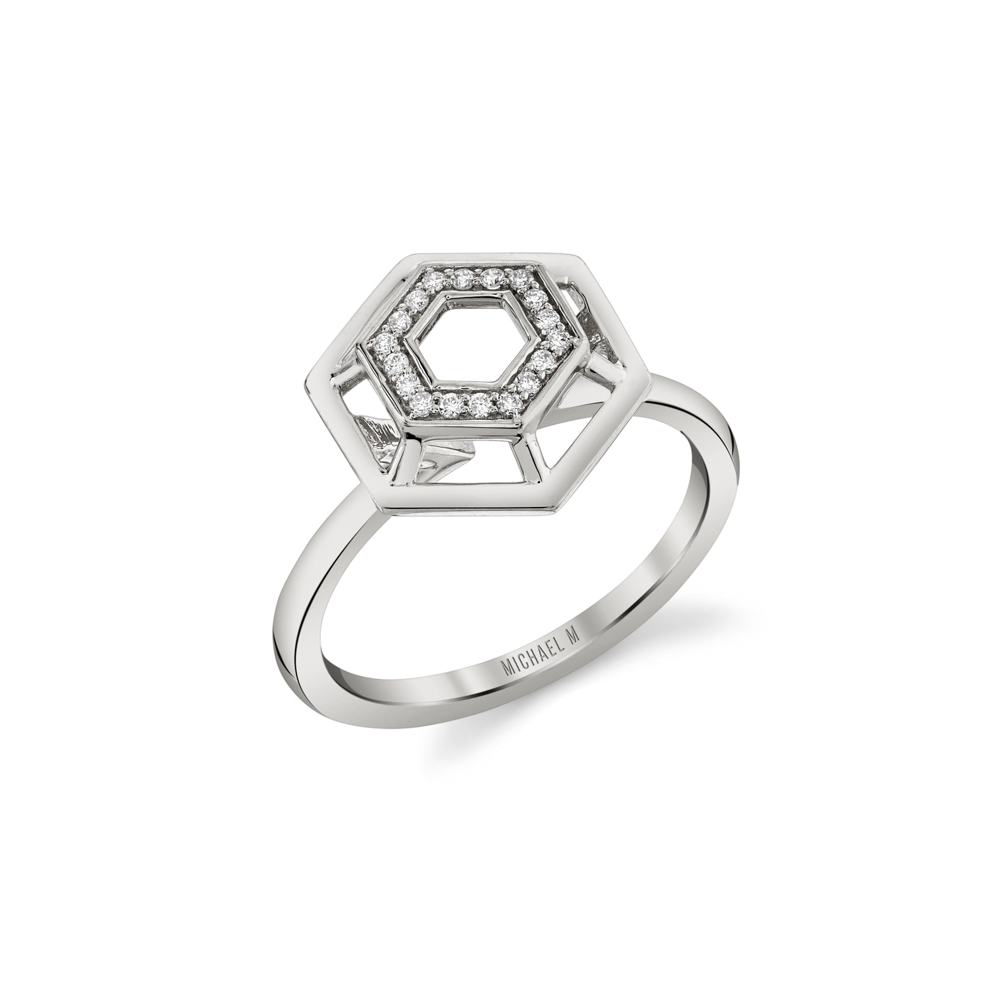MICHAEL M Fashion Rings 14K White Gold / 4 Hex Truss Cocktail Ring F513