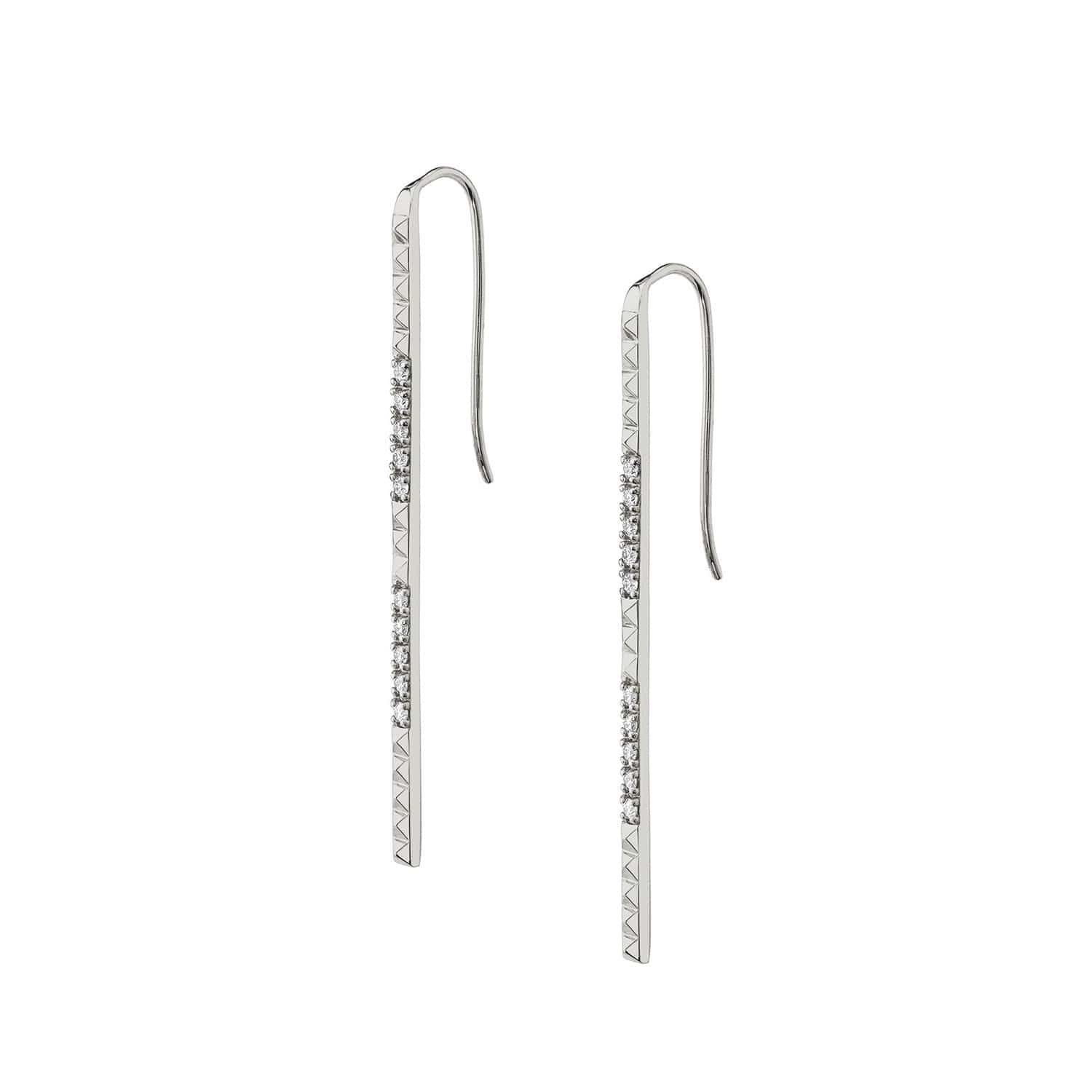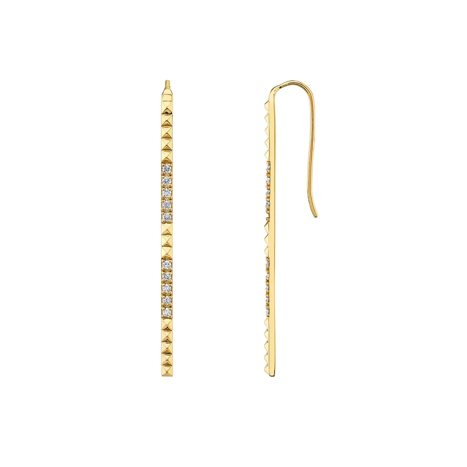 Modern and intricate, our Pavé Foundation Bar Earrings feature 20 sparkling prong set diamonds on a lightweight studded bar, adding a hint of intrigue to