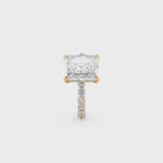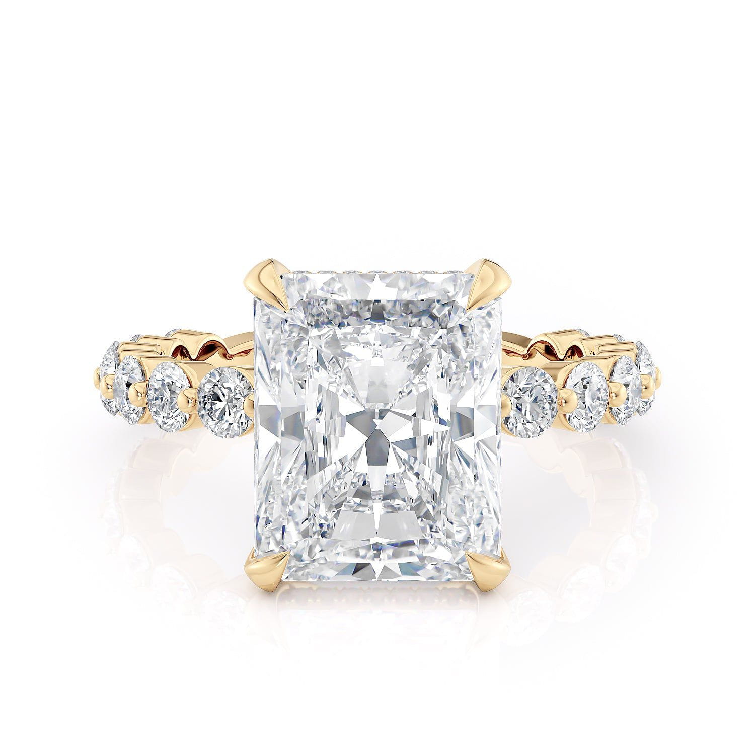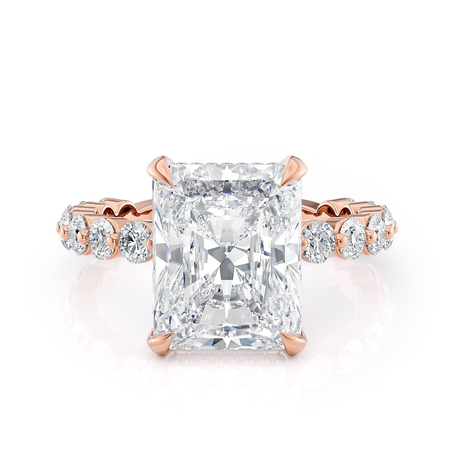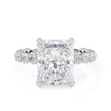 This stunning Crown R782-3 Radiant ring showcases timeless elegance, masterfully crafted to perfection. Boasting a brilliant 3 carat radiant-cut diamond, it is adorned by a