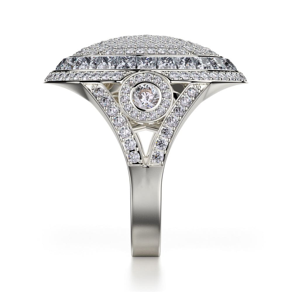 Our Diamond Champion Ring is glamorous and timeless. Adorned with 2.85 carat stunning diamonds in prong, bezel and channel settings alongside incredible side detail, you won't