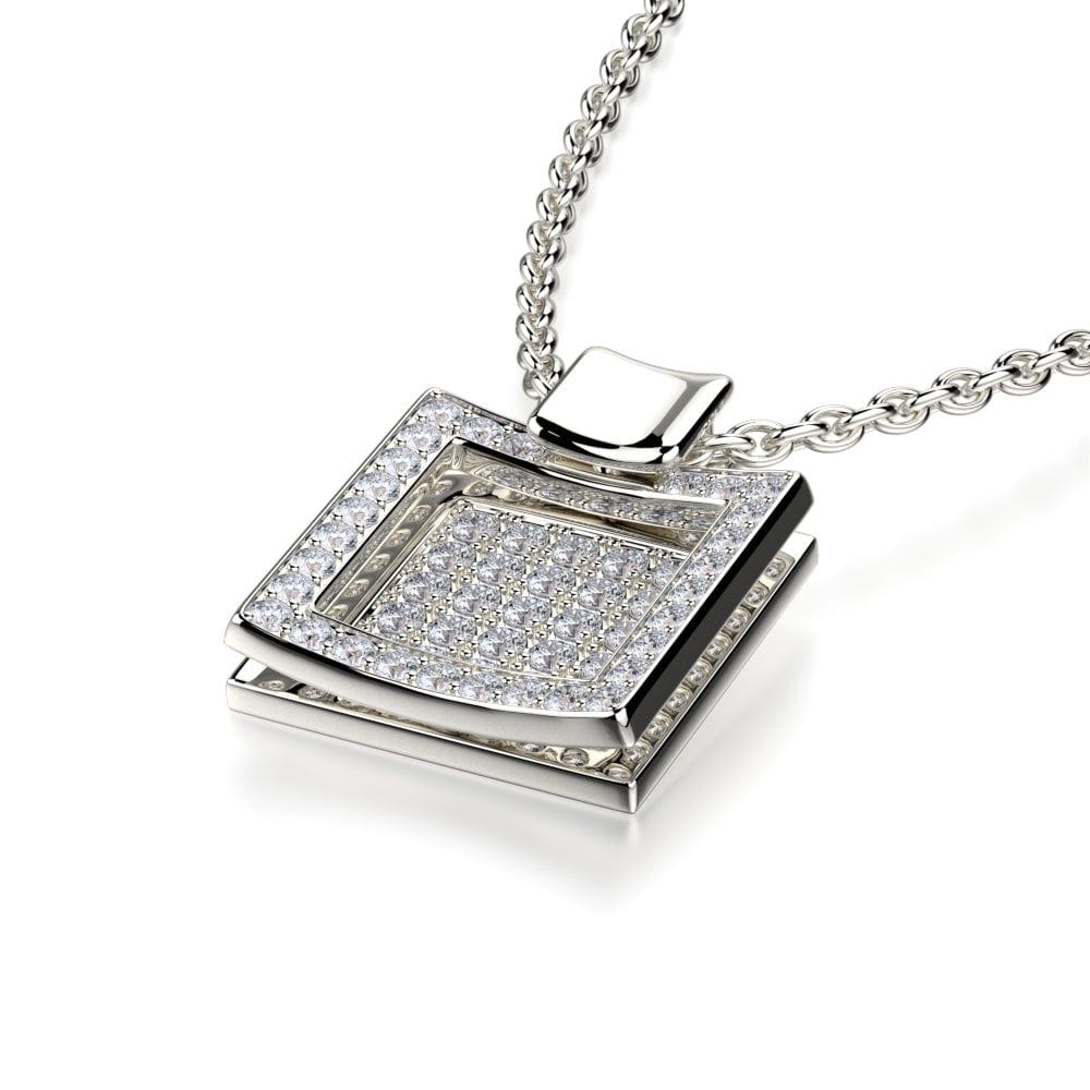 Diamond Filled Square Pendant Necklace