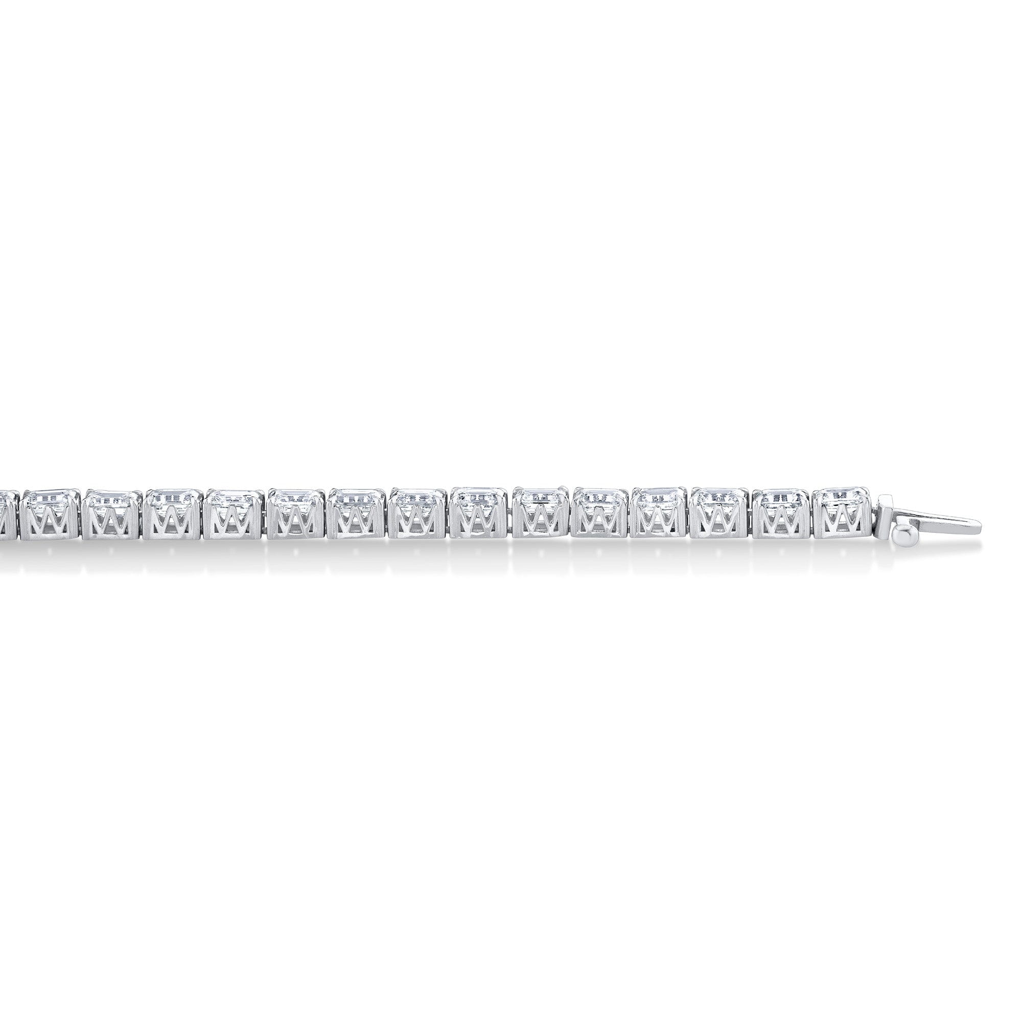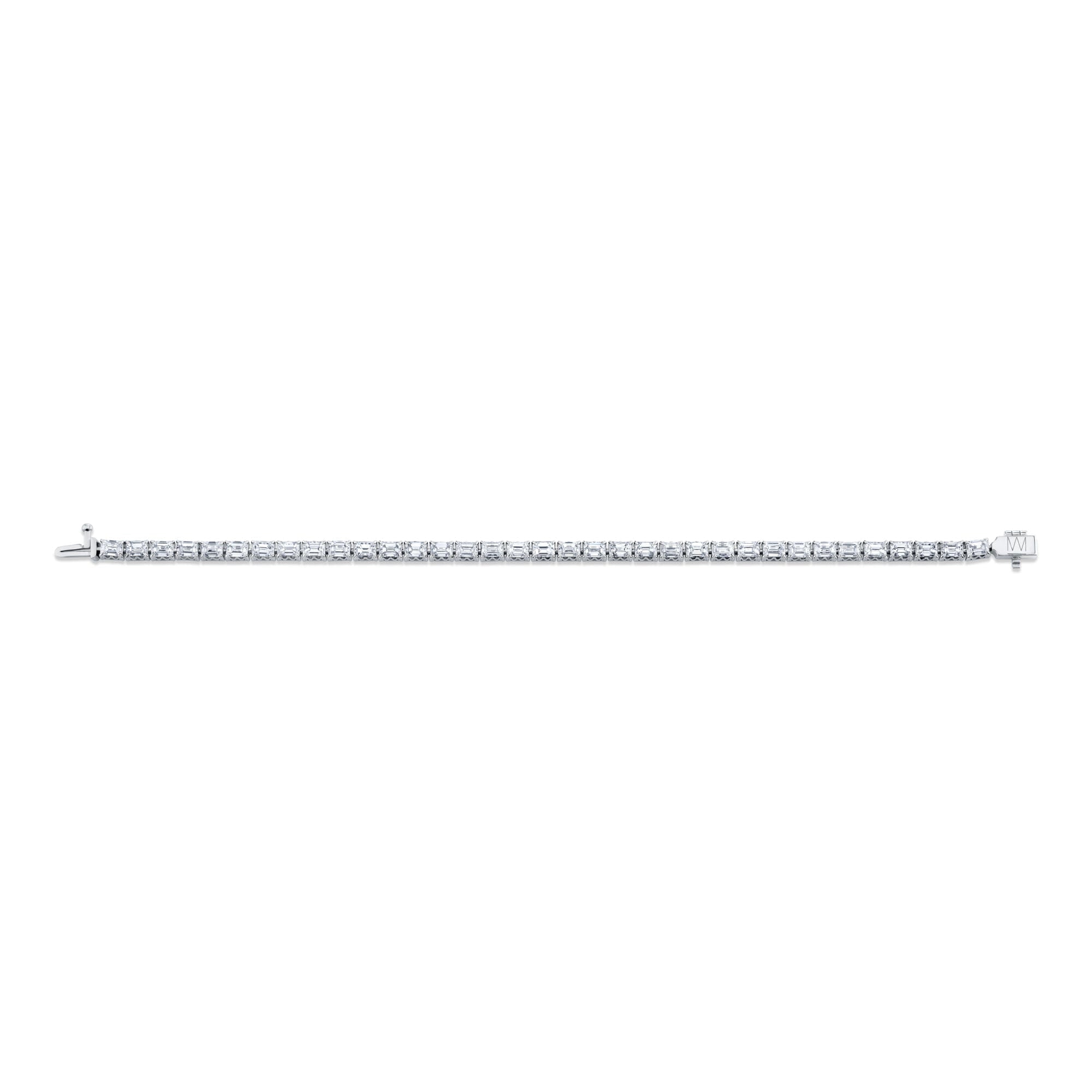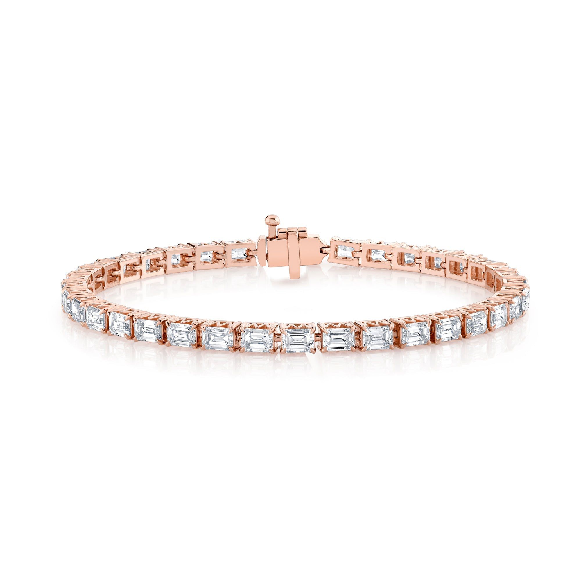 The Meksian Emerald Tennis Bracelet petite combines timeless elegance with expert craftsmanship. Featuring emerald-cut diamonds, each stone is securely held in the unique patented Meksian