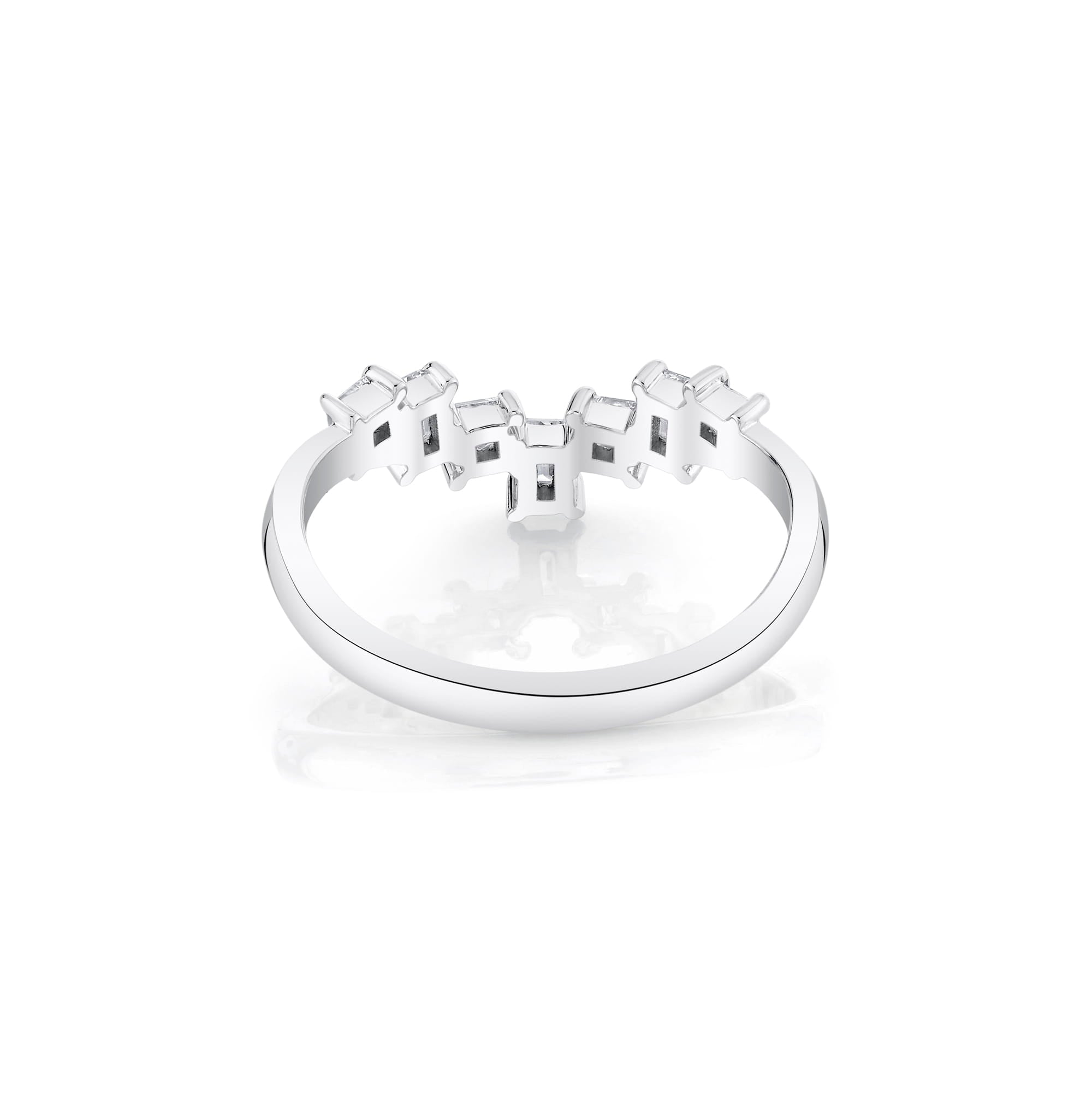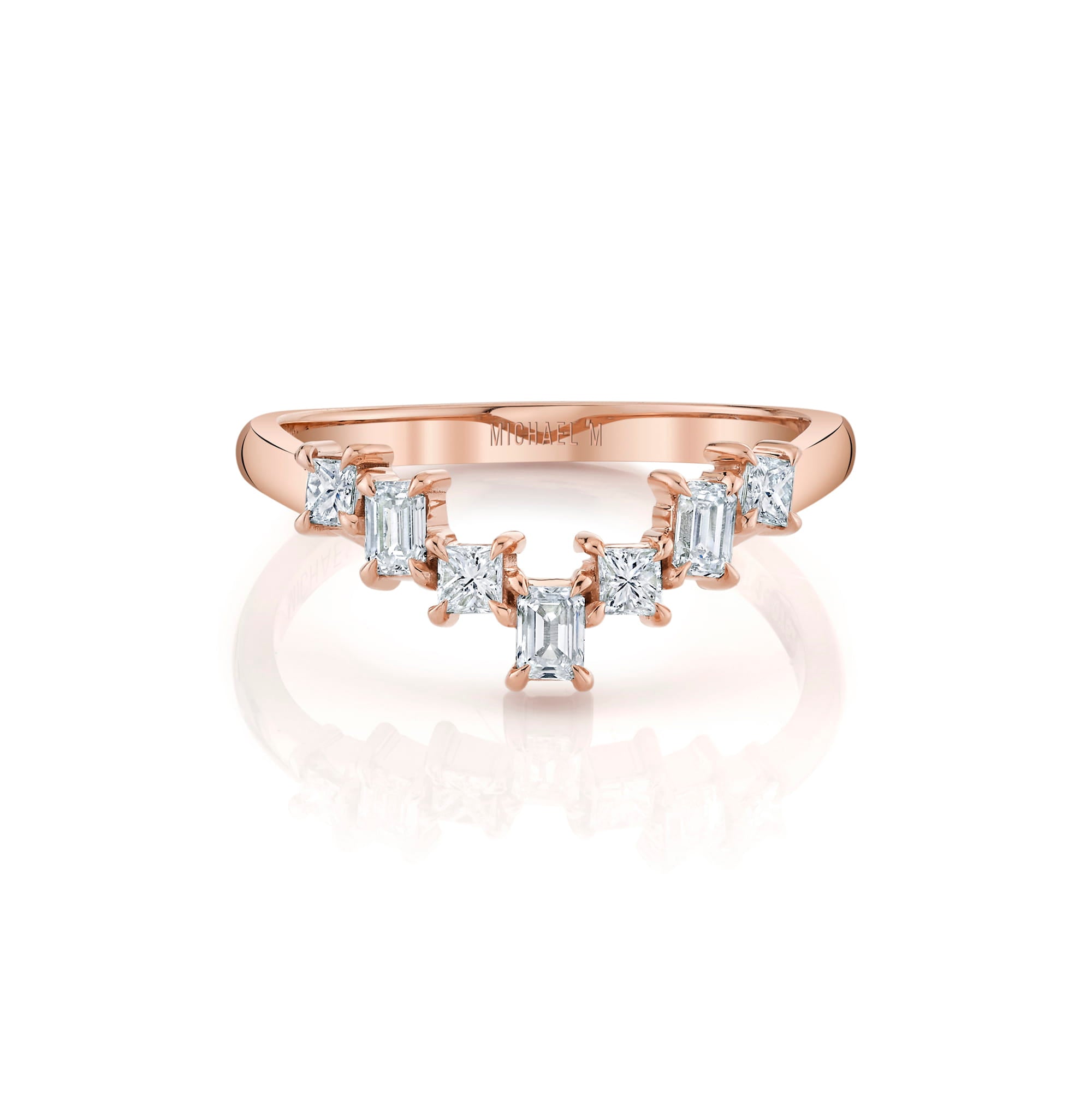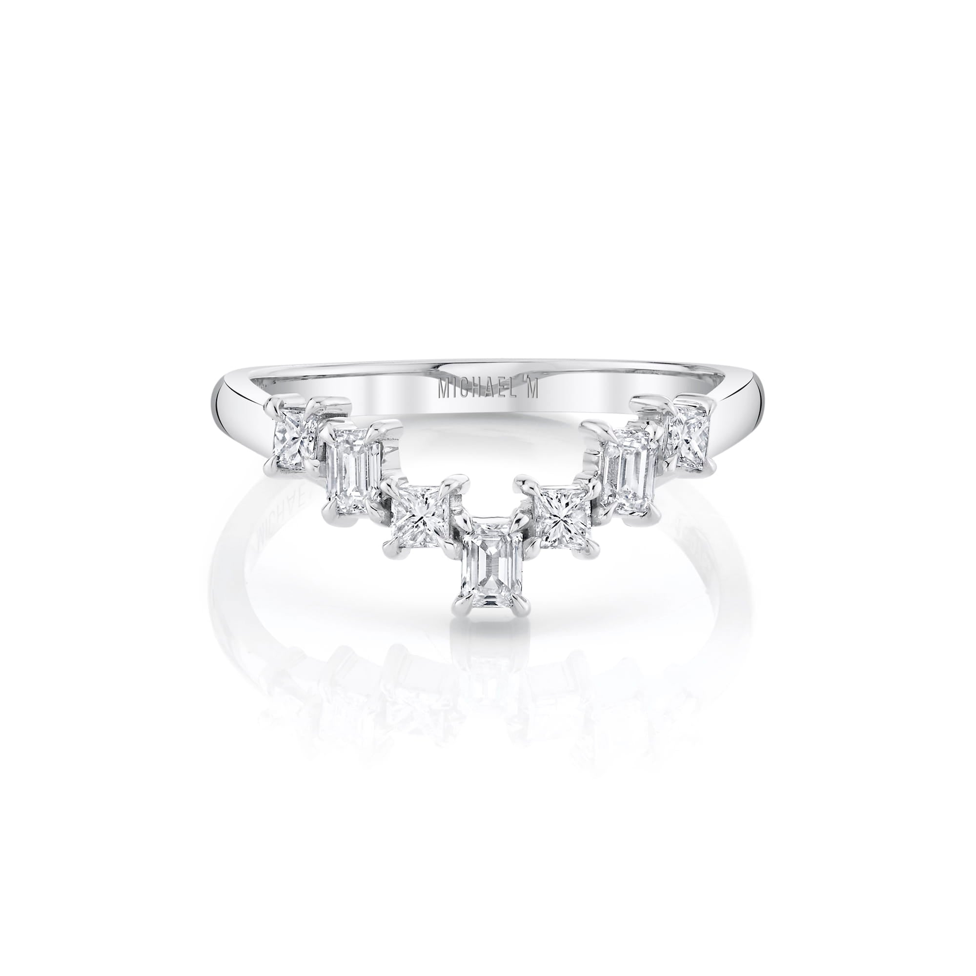 Refined and contemporary, this ring showcases a striking arrangement of mixed-cut diamonds, for a clean, geometric look. The gently contoured silhouette creates a flattering curve