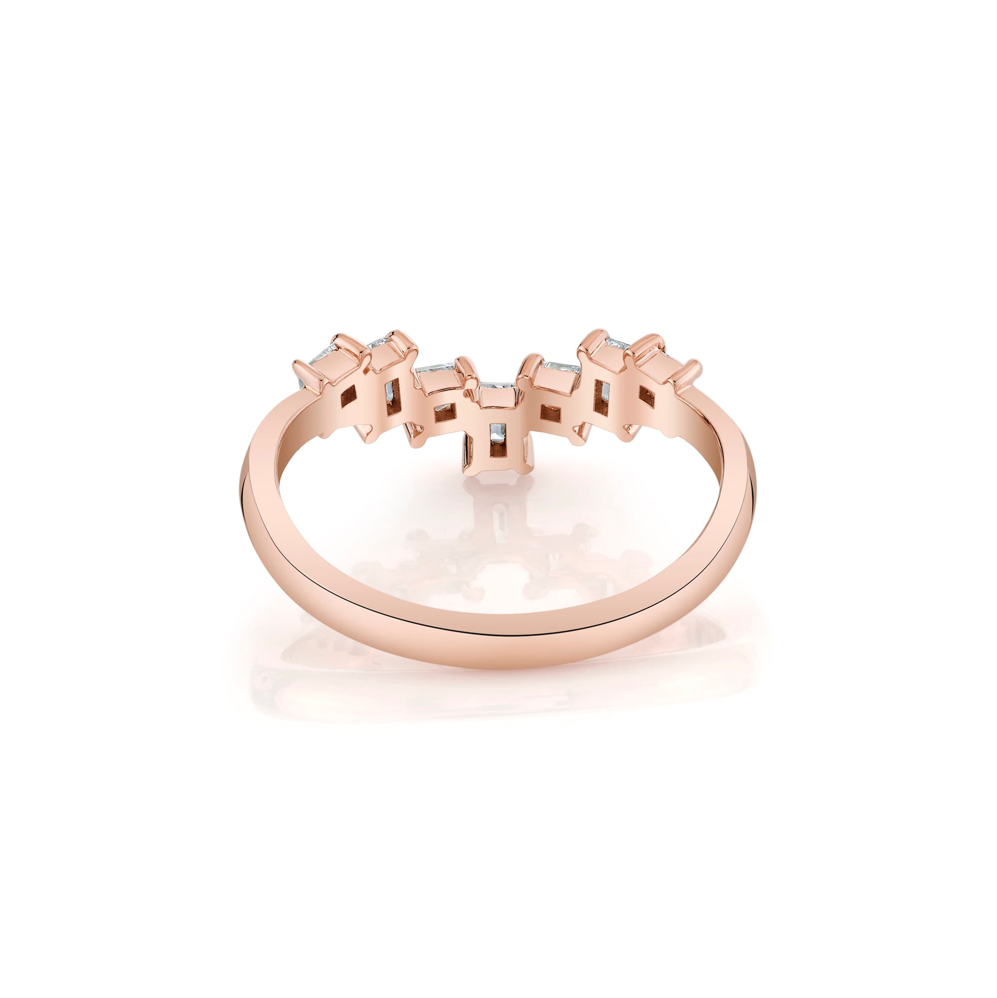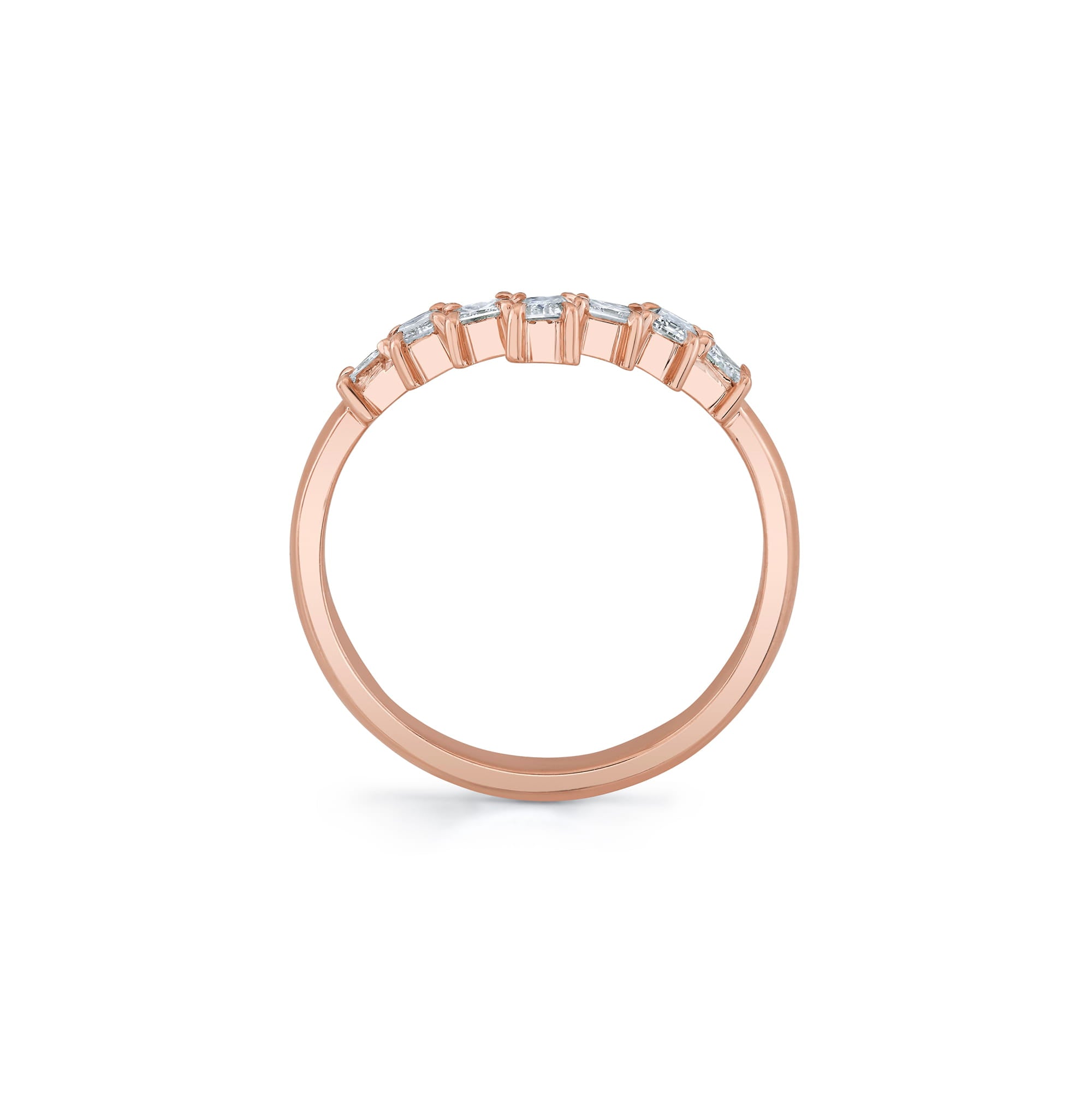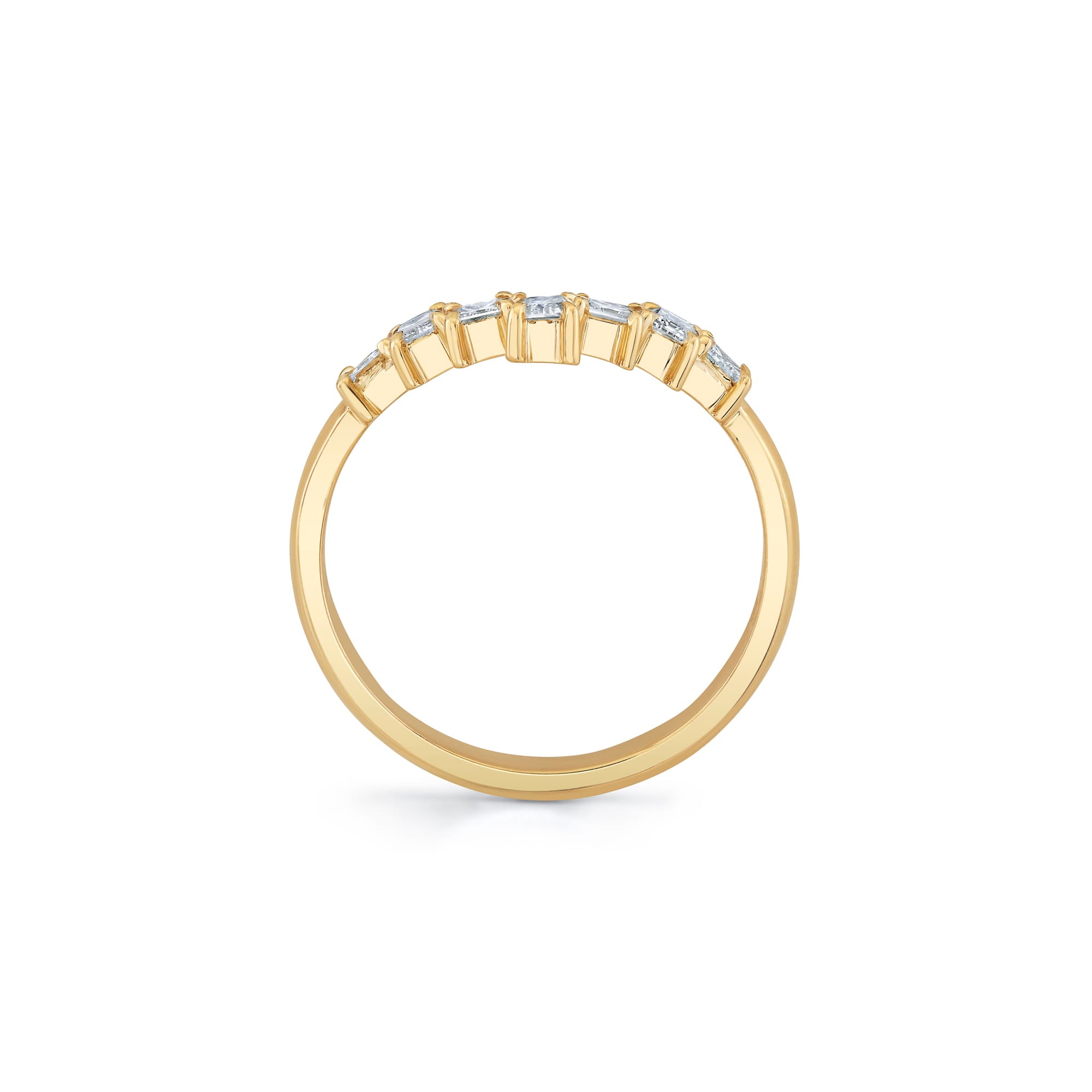 Refined and contemporary, this ring showcases a striking arrangement of mixed-cut diamonds, for a clean, geometric look. The gently contoured silhouette creates a flattering curve