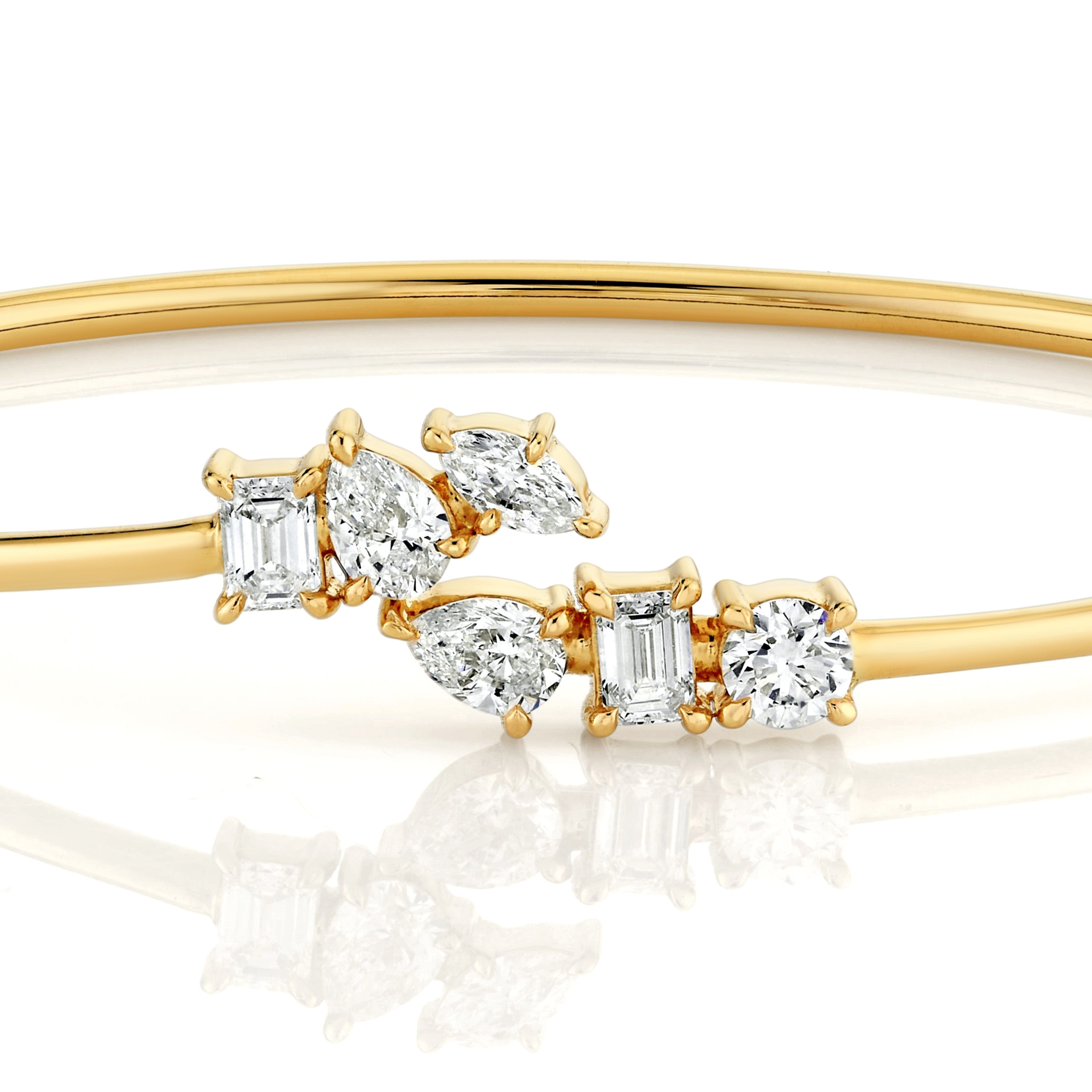 Expertly crafted with a flexible wire design, this Montage Bypass Cuff showcases an array of stunning mixed cut diamonds for a flawless and sophisticated look.