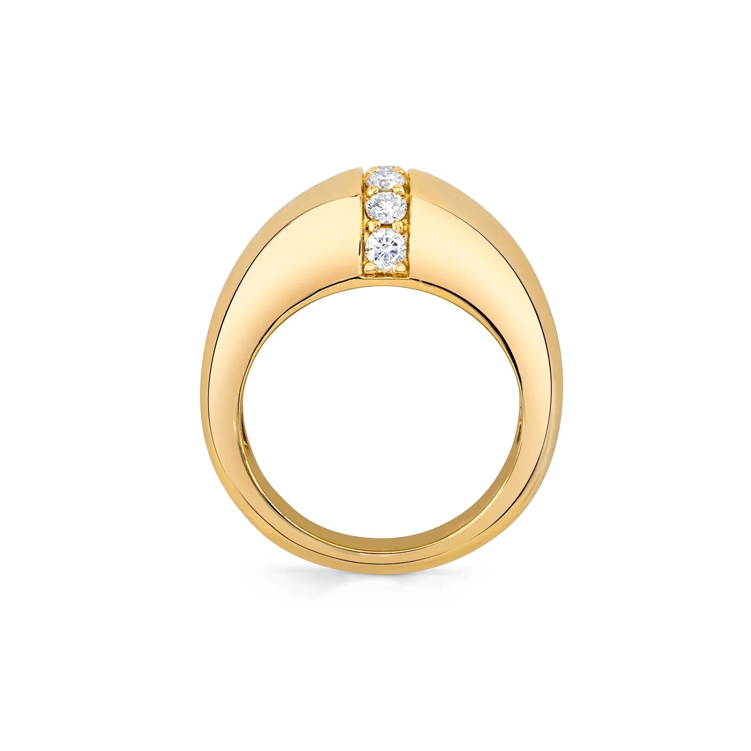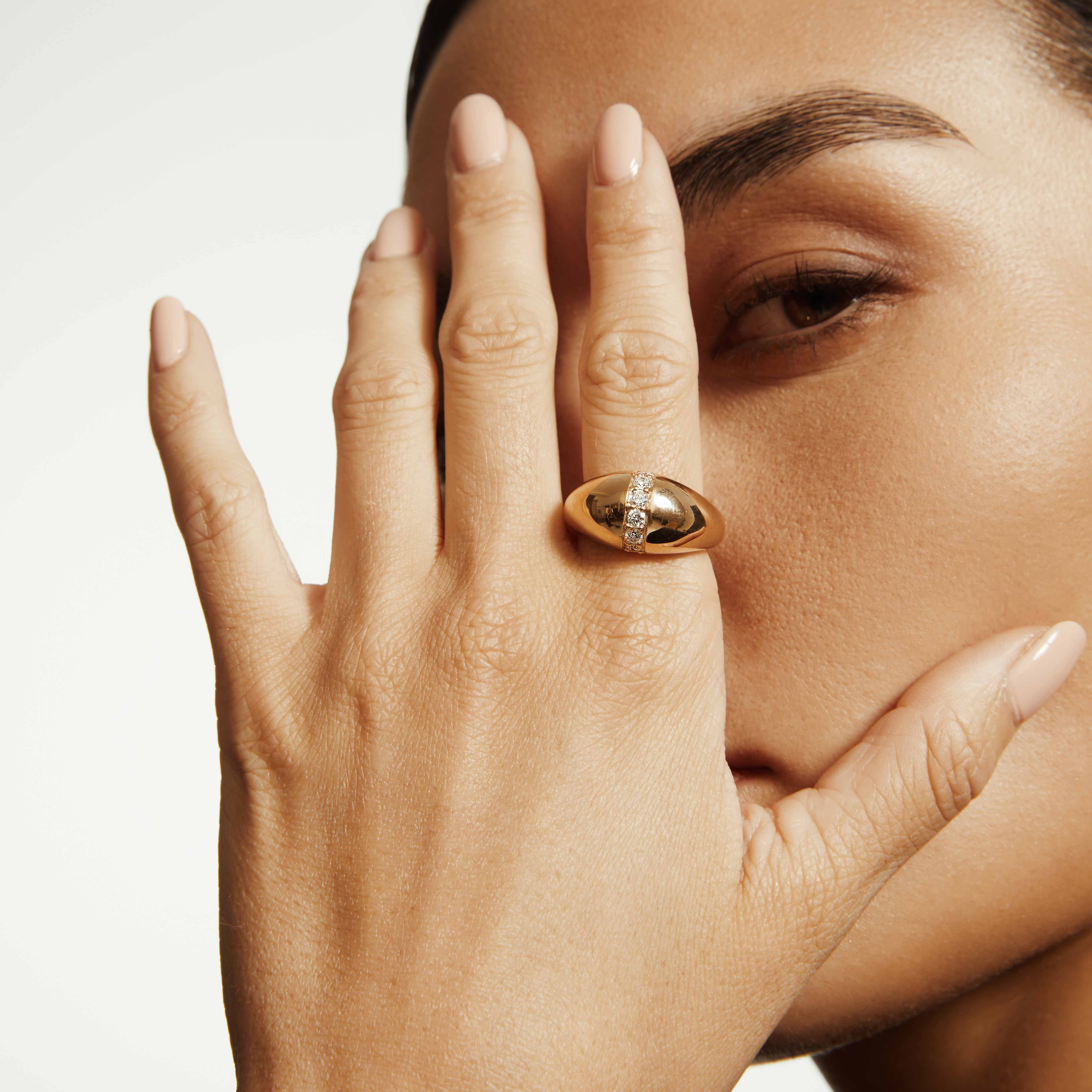 A throwback design made classic and contemporary. The ORB Split Signet Ring features a voluminous golden signet ring split down the middle with a perfectly