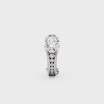 Discover the timeless sophistication of the Strada R675-2 engagement ring, which showcases prominent diamonds along the band and smaller diamonds along its profile, as well