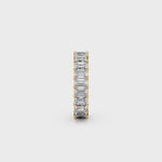 The R904B Wedding Band features our patented M silhouette, designed to showcase each vibrant emerald with brilliance and stability. The sculptural M design enhances light